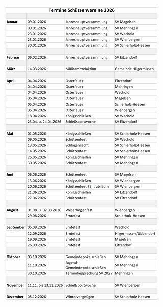 als Web-Ansicht: Terminübersicht 2025 des HV Wechold