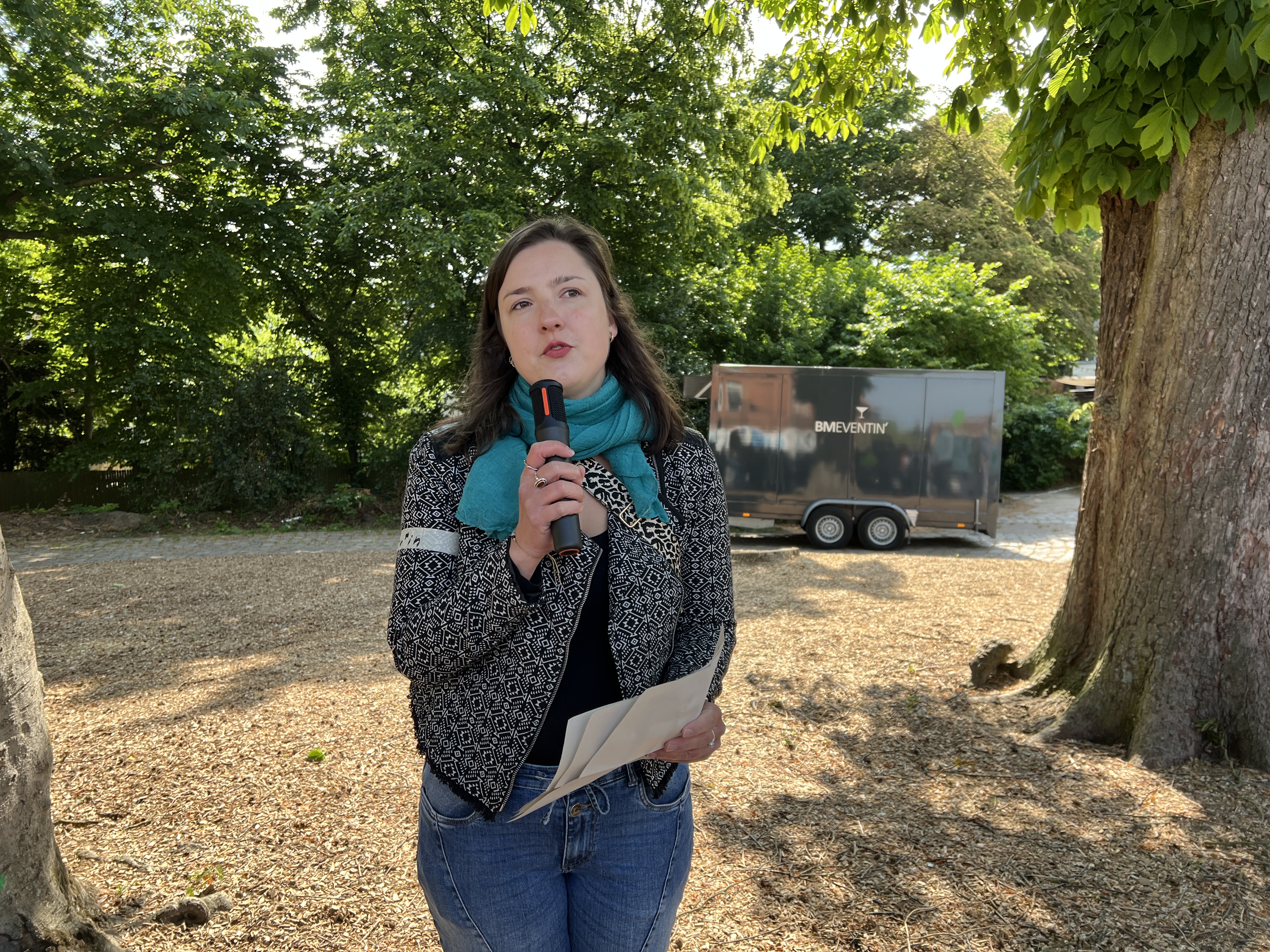 Bild: Franziska Stelling bei einer Kundgebung gegen Gewalt an Frauen in Nienburg.