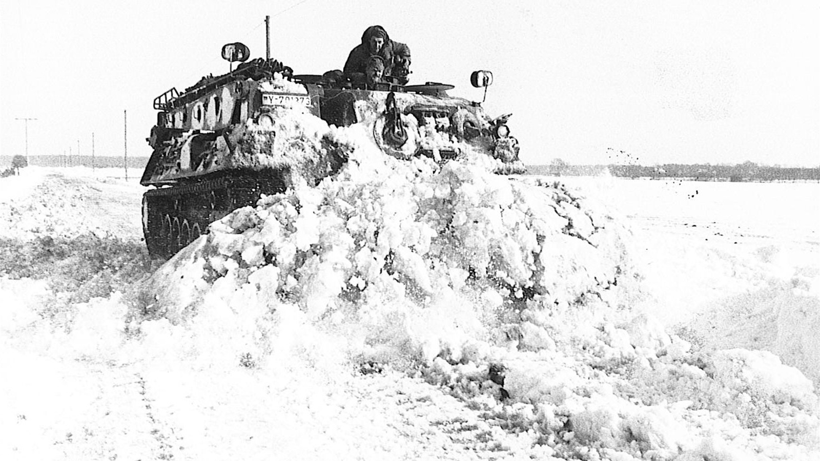 Bild: Die Bundeswehr räumte im Jahr 1979 mit Bergepanzern des Typs „Leopard“ die Straßen im Landkreis Nienburg.