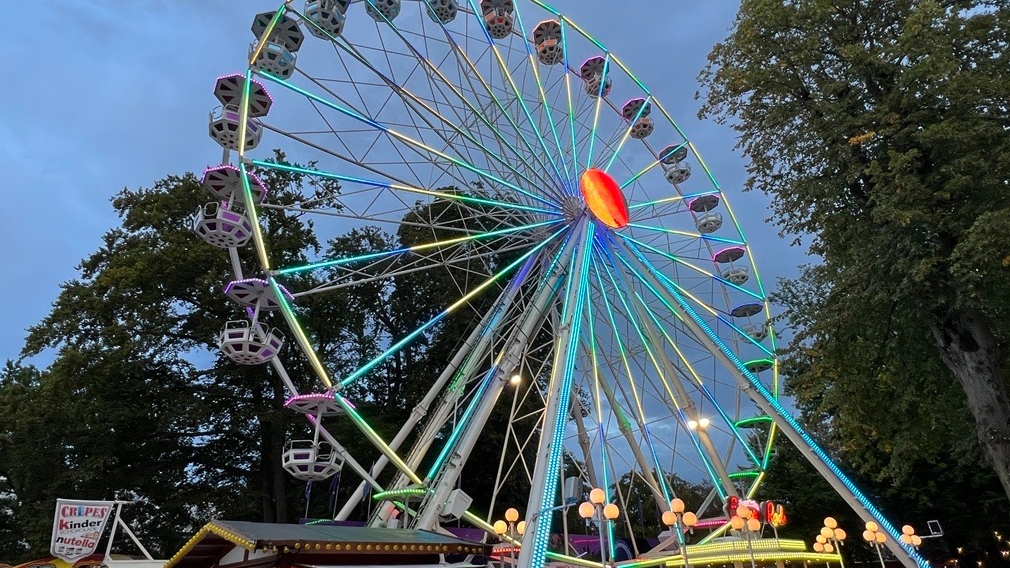 Bild: Das Riesenrad dreht sich hoch über Nienburg.