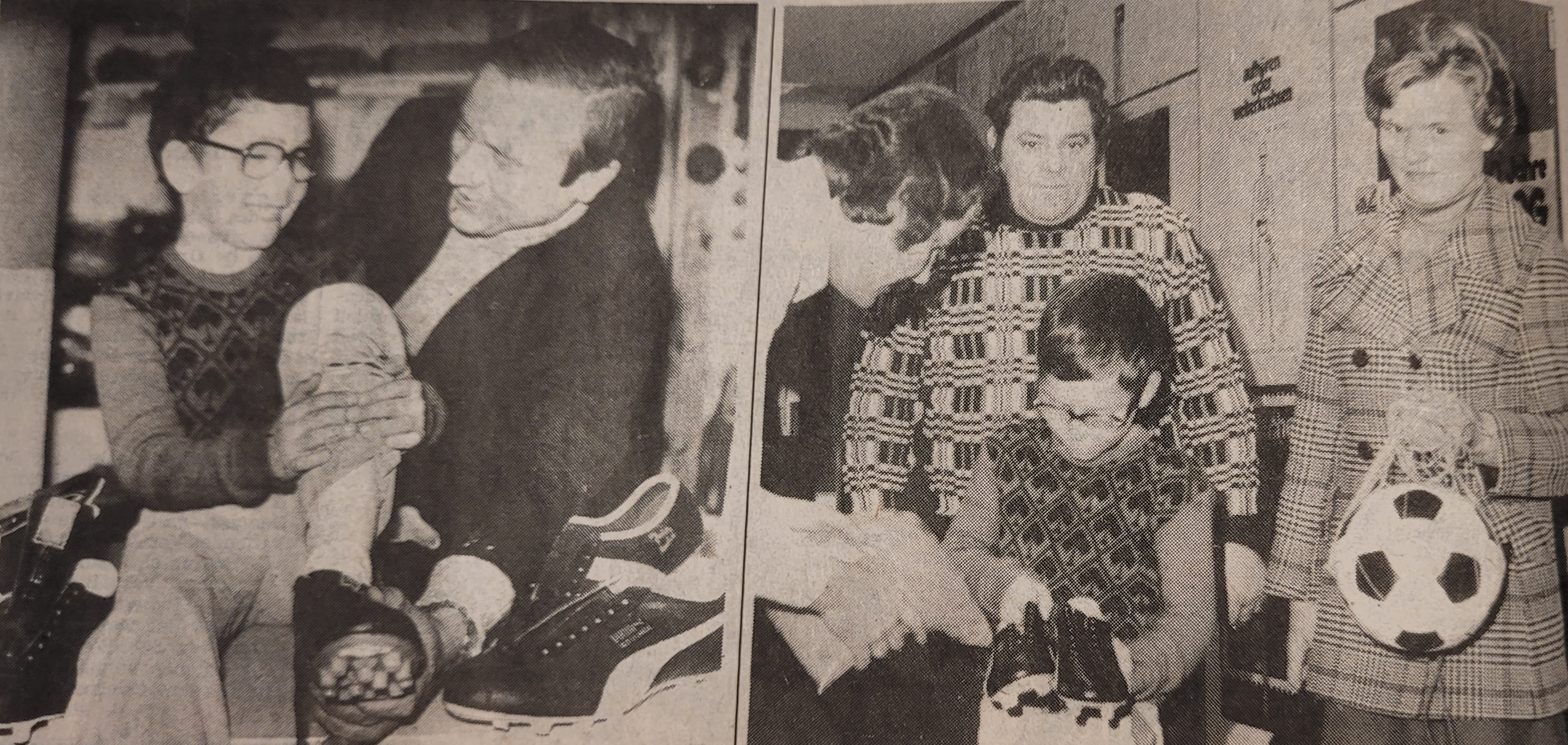 Bild: Der achtjährige Frank Dittmann (links) strahlt von einem Ohr zum anderen: Er ist bester „HARKE-Fußballtipper“.