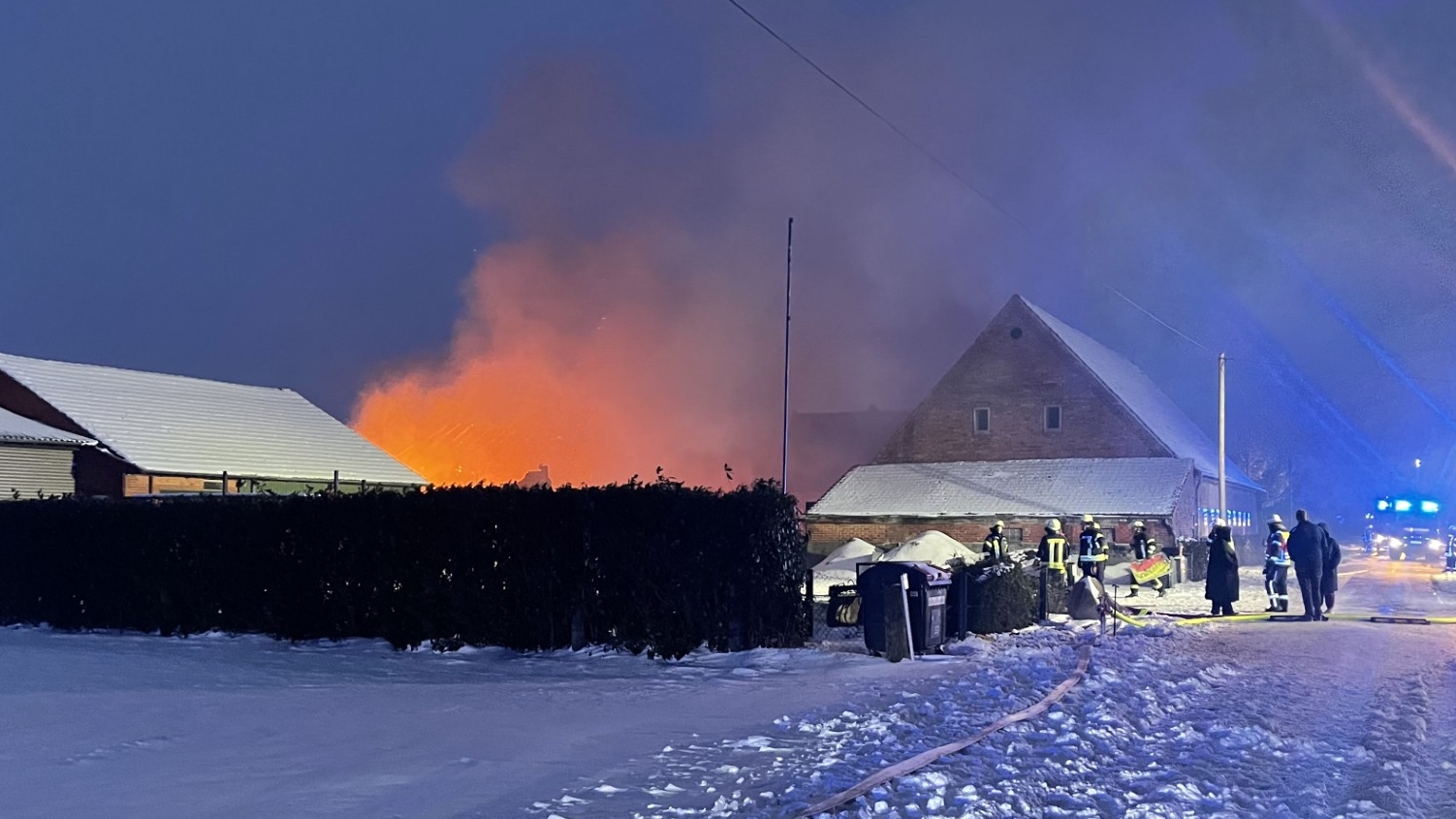 Bild: Landwirtschaftliches Gebäude brennt: Feuerwehr rückt mit Großaufgebot und Drehleiter nach Eitzendorf aus