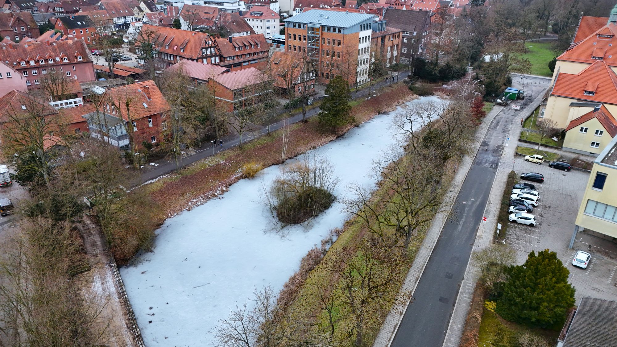 Bild: Der Stadtgraben in Nienburg im winterlichen Ambiente. Zum Frühjahr soll der gesperrte Bereich wieder freigegeben werden.