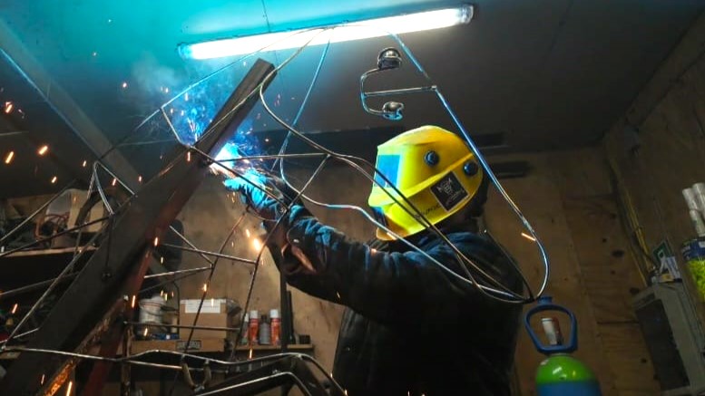 Bild: Lennart Kramer aus Bücken schweißt das Niedersachsenpferd aus Schrott.