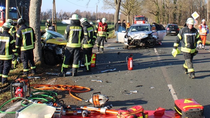 Rahden – Bei einem Unfall in Rahden unweit der Grenze zum Landkreis Nienburg sind zwei Menschen schwer verletzt worden. Ein Auto wurde nach dem Crash gegen einen Baum geschleudert.