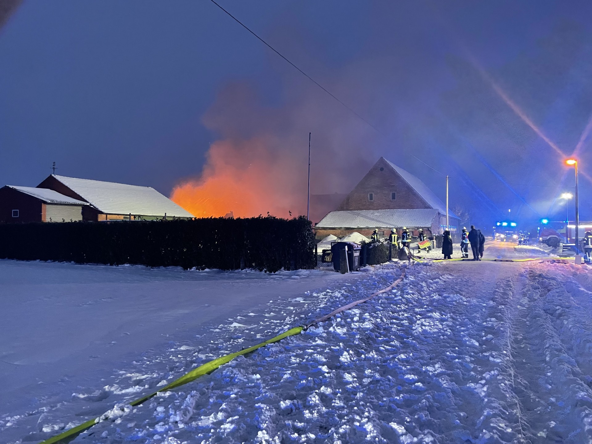 Landwirtschaftliches Gebäude brennt: Feuerwehr rückt mit Großaufgebot und Drehleiter nach Eitzendorf aus