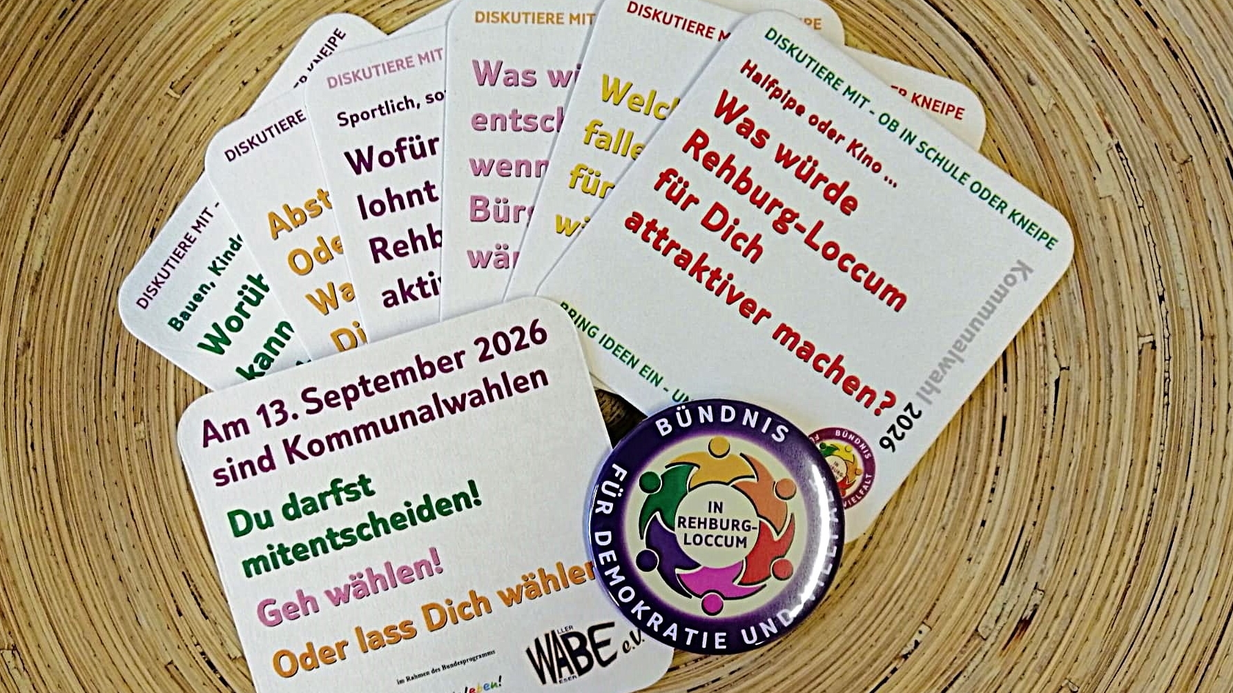 Rehburg-Loccum – Mit einem Bierdeckel für die Demokratie werben: Bündnis aus Rehburg-Loccum zeigt, dass die Staatsform auf Bierdeckel passt.