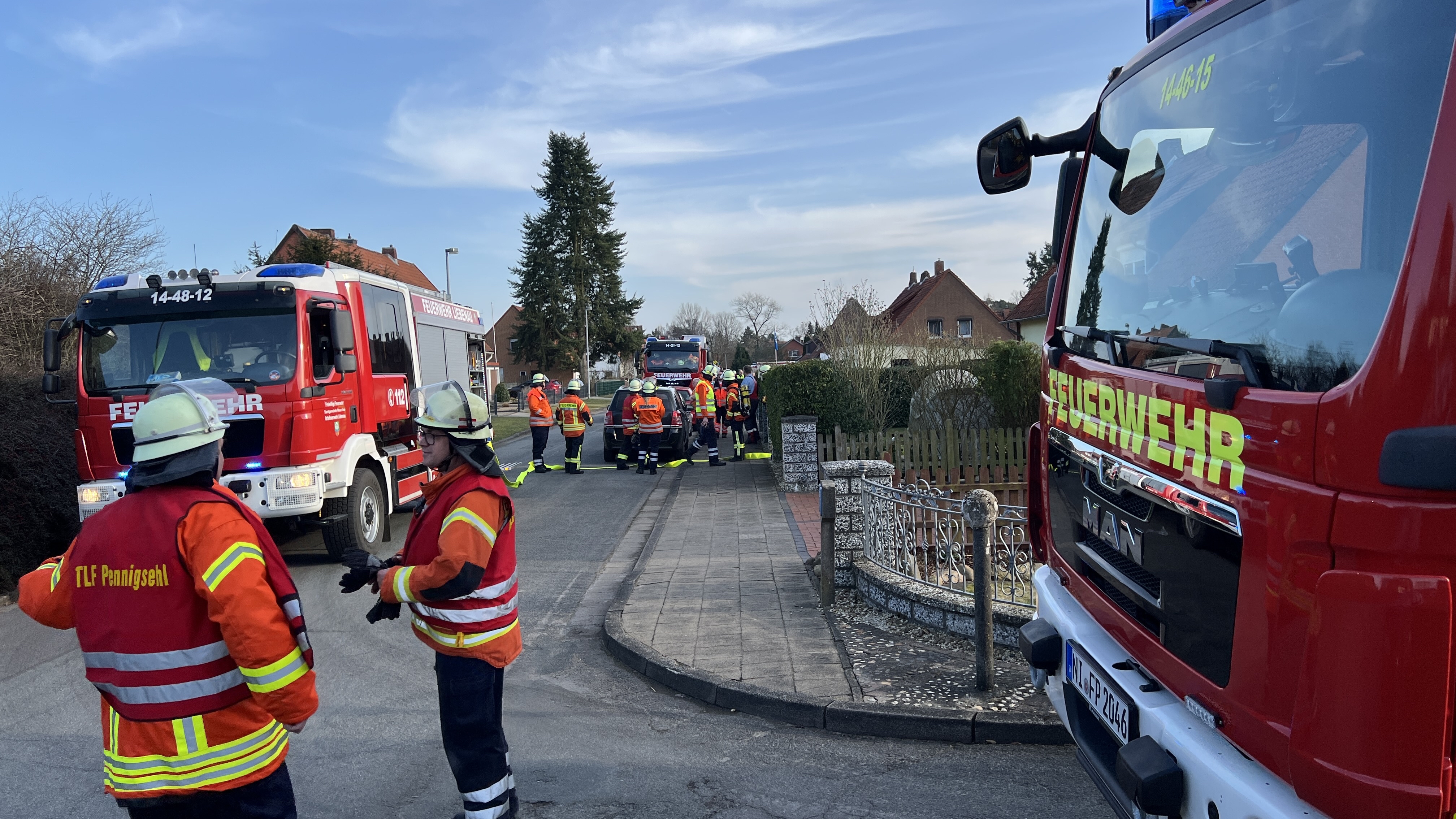 Bild: Die Feuerwehr ist am Haseler Weg in Liebenau im Einsatz.