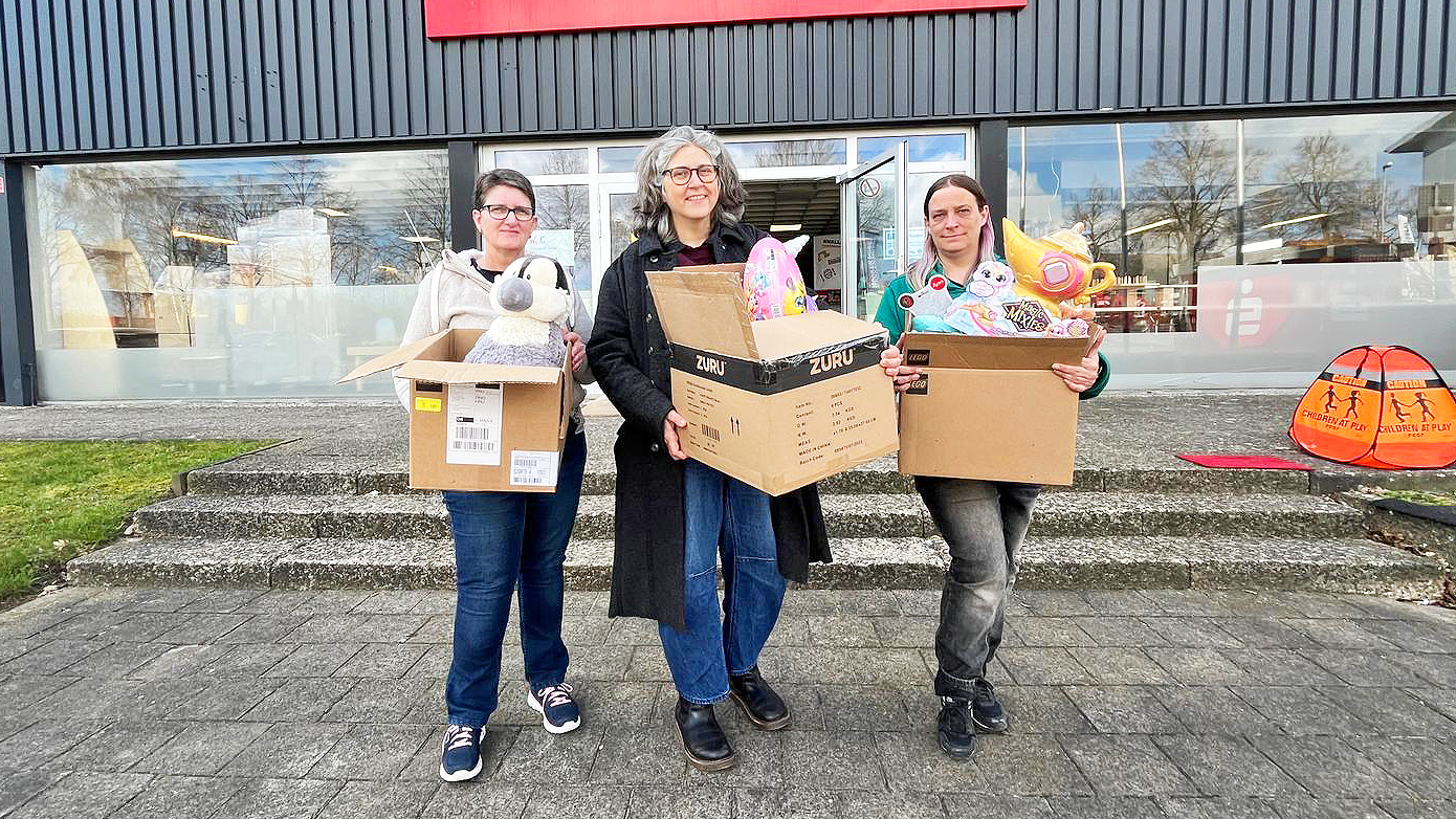 Bild: Geschäftsführerin Silvia Winter (Mitte) und ihre Mitarbeiterinnen Regine Nähr (links) und Jennifer Lohmeyer hatten einige Kisten zu bewegen.
