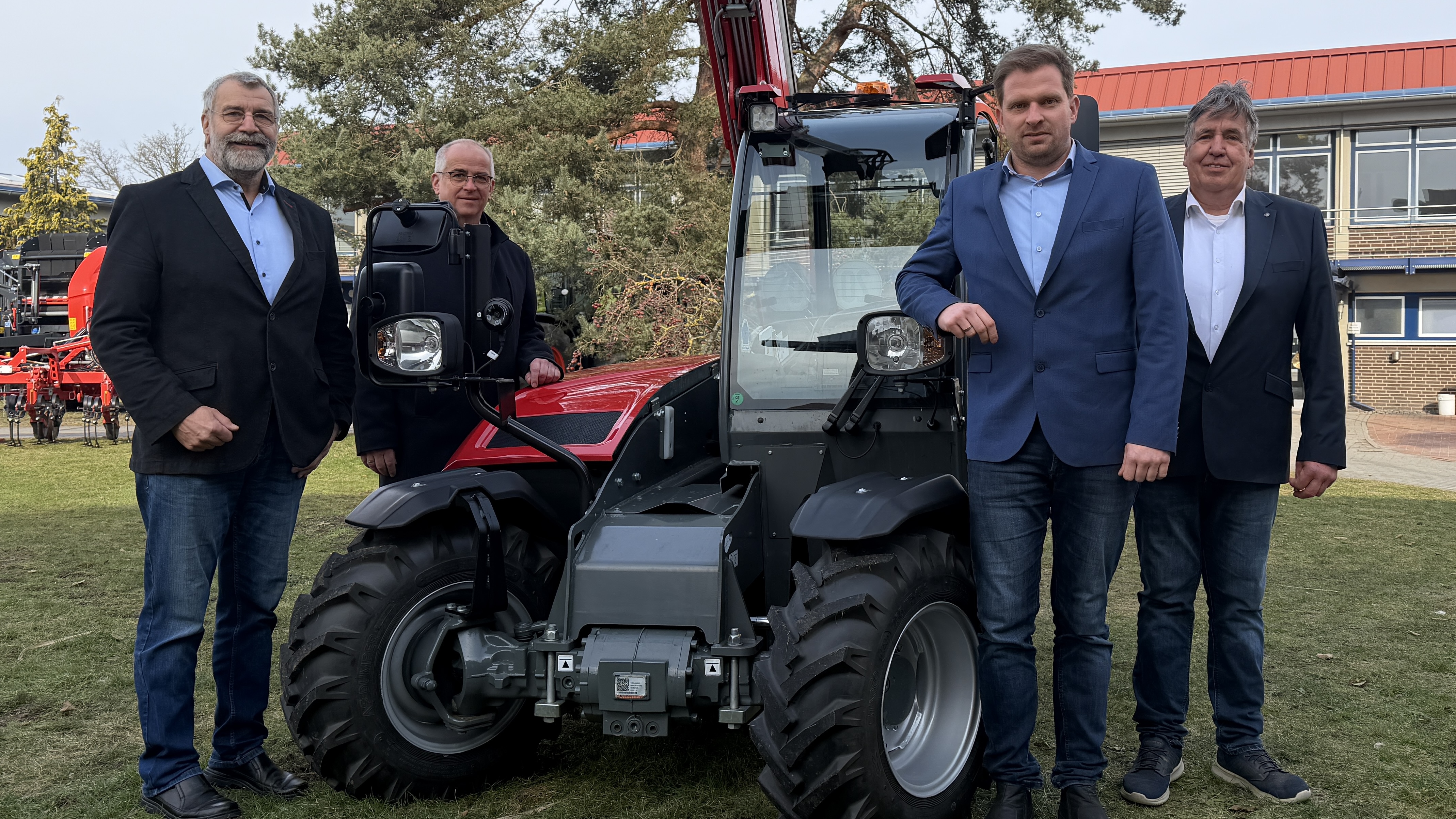 Bild: Von Bremer Landmaschinen Bernd Bremer, Kreislandwirt Tobias Göckeritz, Deula-Strategische Entwicklung und Personalwesen Christian Bachnicke, Deula-Geschäftsführer Bernd Antelmann (von links)