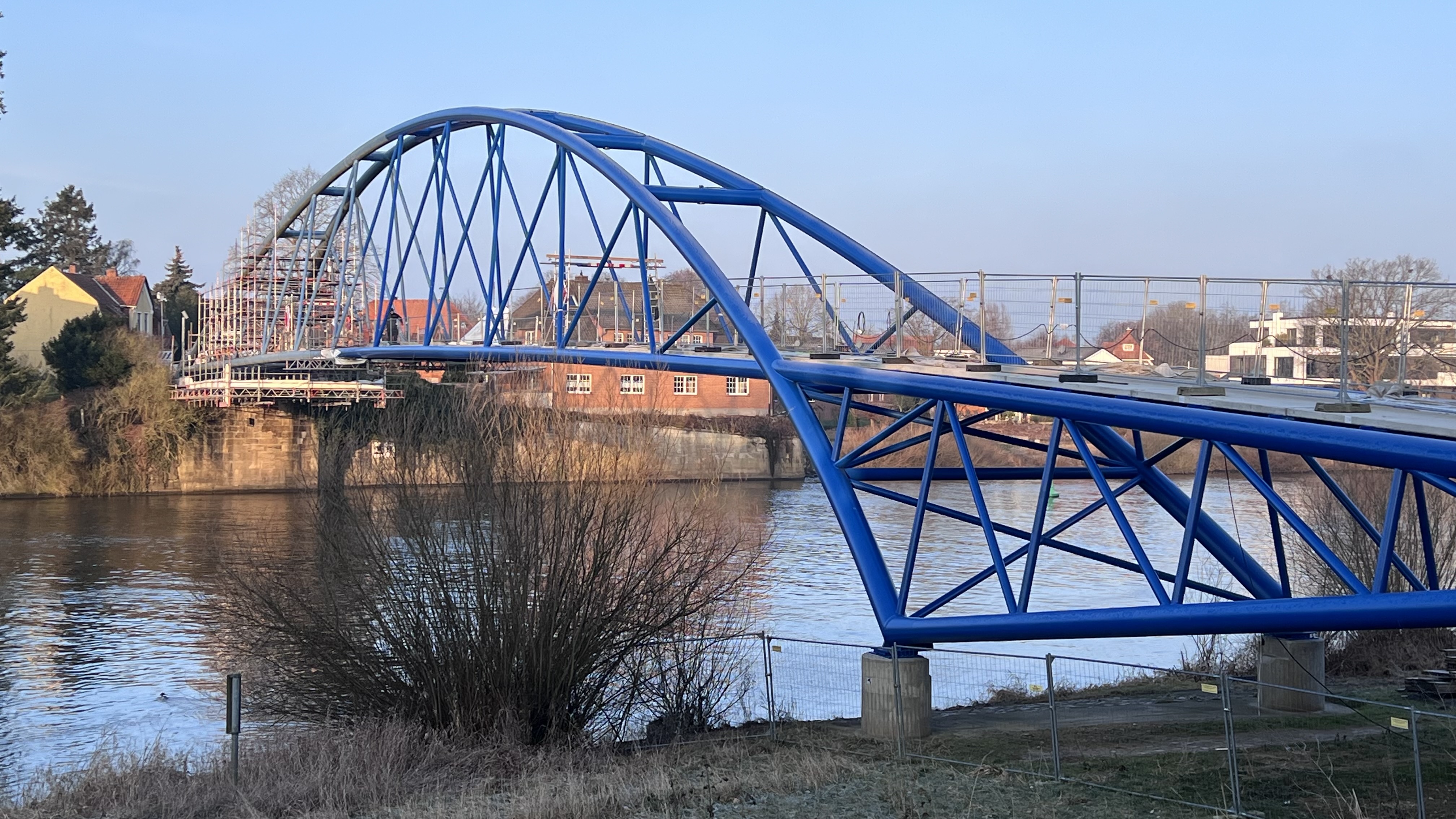 Nienburg – Die Bauarbeiten an der Wesertorbrücke in Nienburg gehen nach dem Wintereinbruch weiter. Die Brücke wird eingerüstet. Der Bürgermeister hat ein Versprechen abgegeben.
