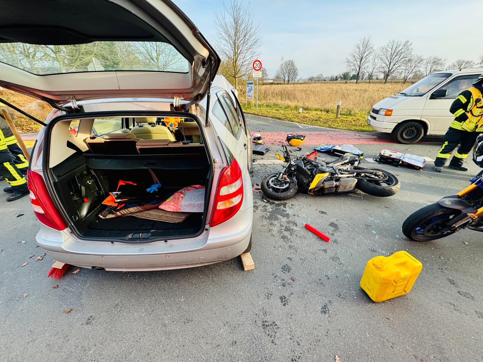 Bild: Schwerer Unfall in Steinhude: Motorrad und Auto stießen am Ortseingang zusammen.