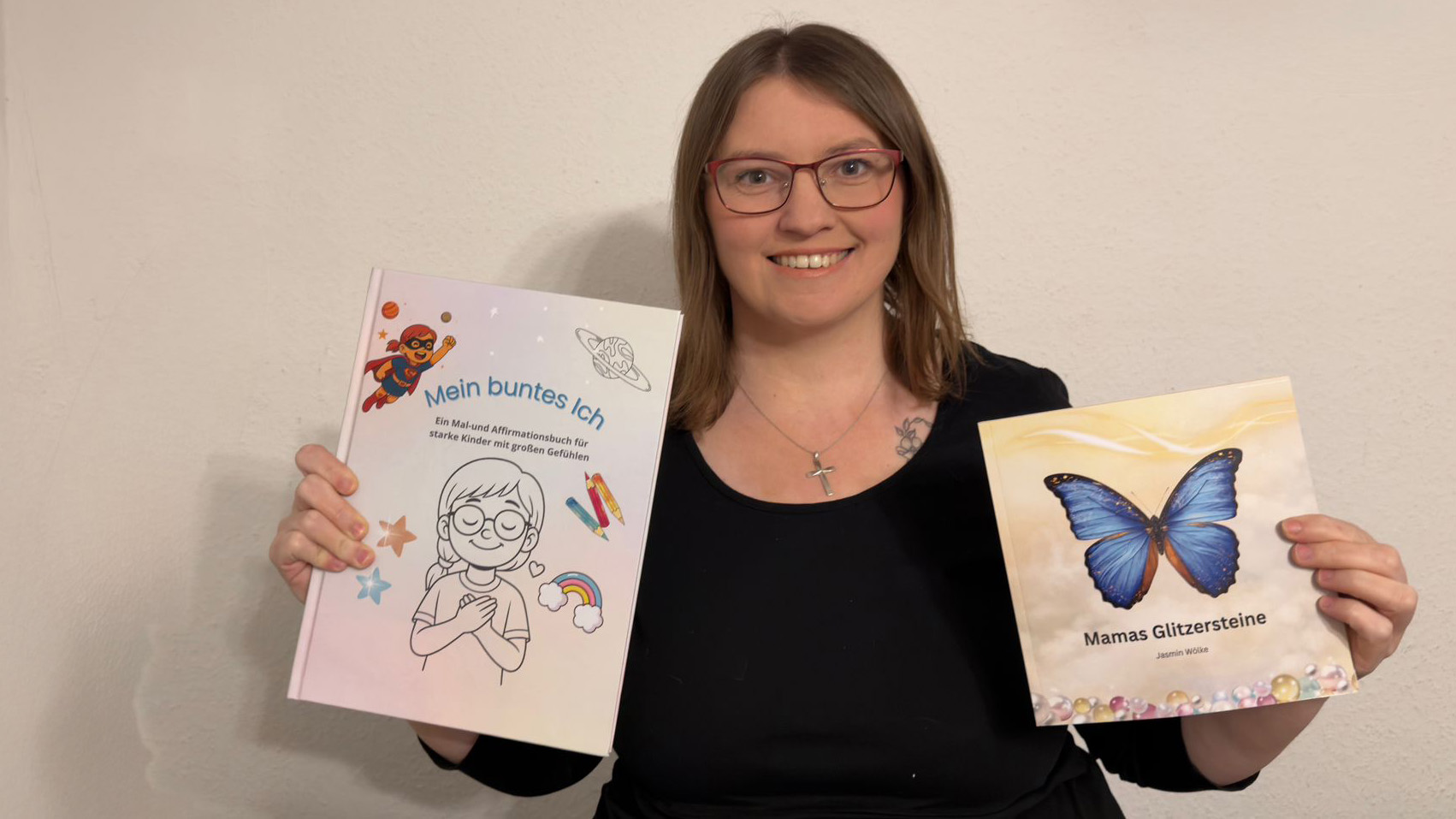 Bild: Jasmin Wölke zeigt stolz ihre beiden Kinderbücher.