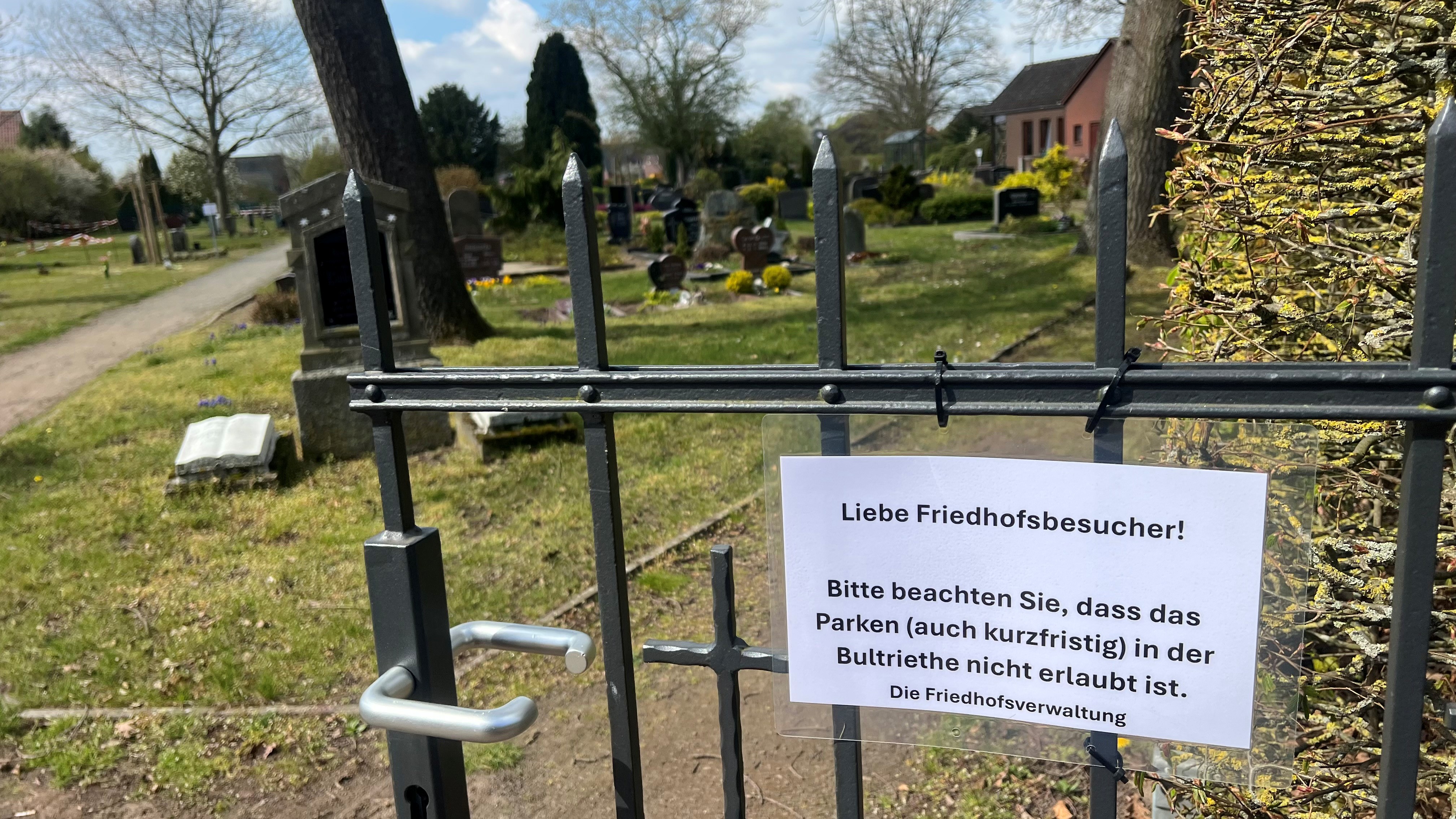 Bild: Viele Besucher des Friedhofs Erichshagen parken zurzeit auf der Bultriethe. Dort gilt jedoch Parkverbot.