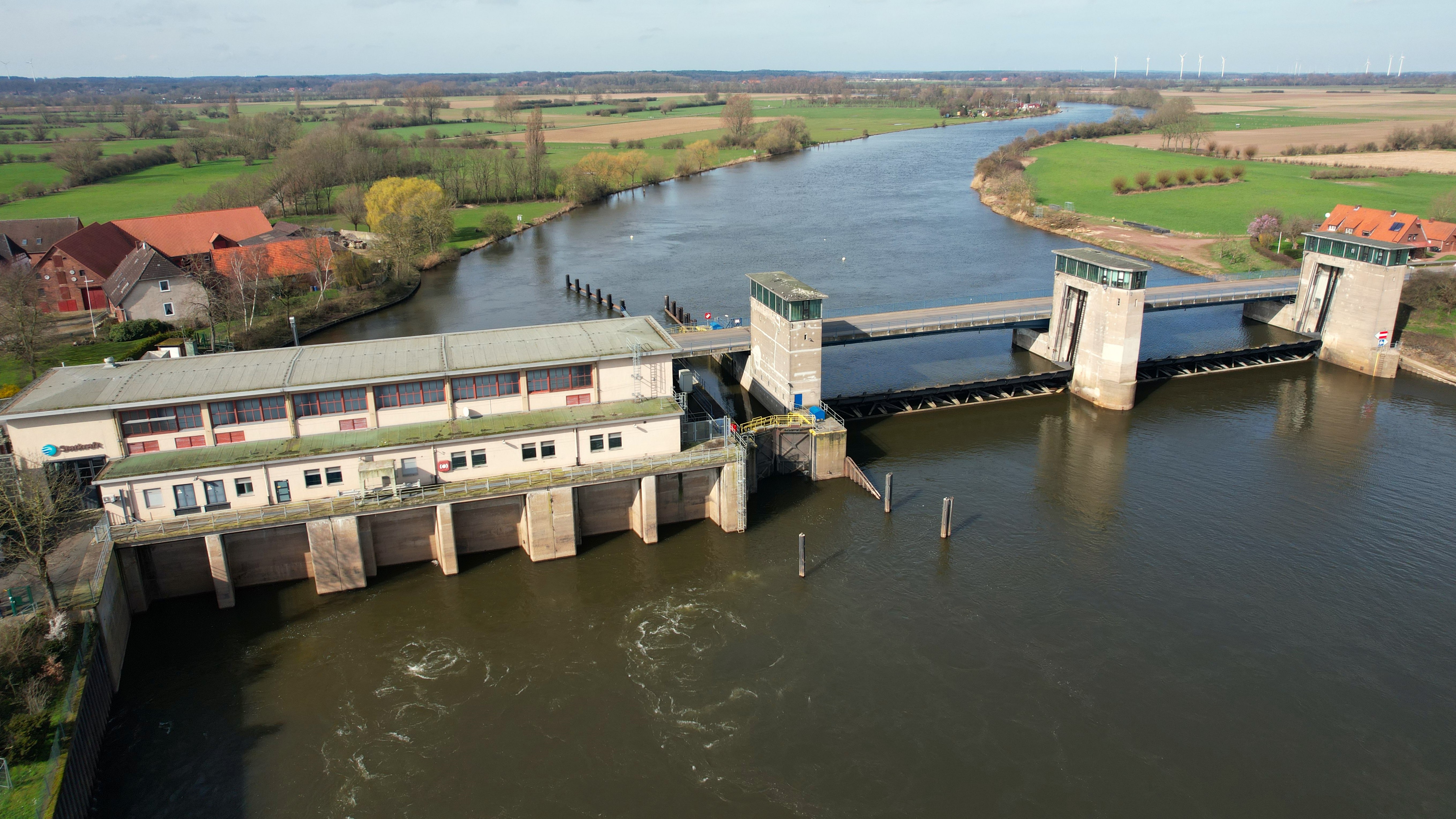 Bild: Die Wasserstraßen- und Schifffahrtsverwaltung saniert das Weser-Wehr in Drakenburg.