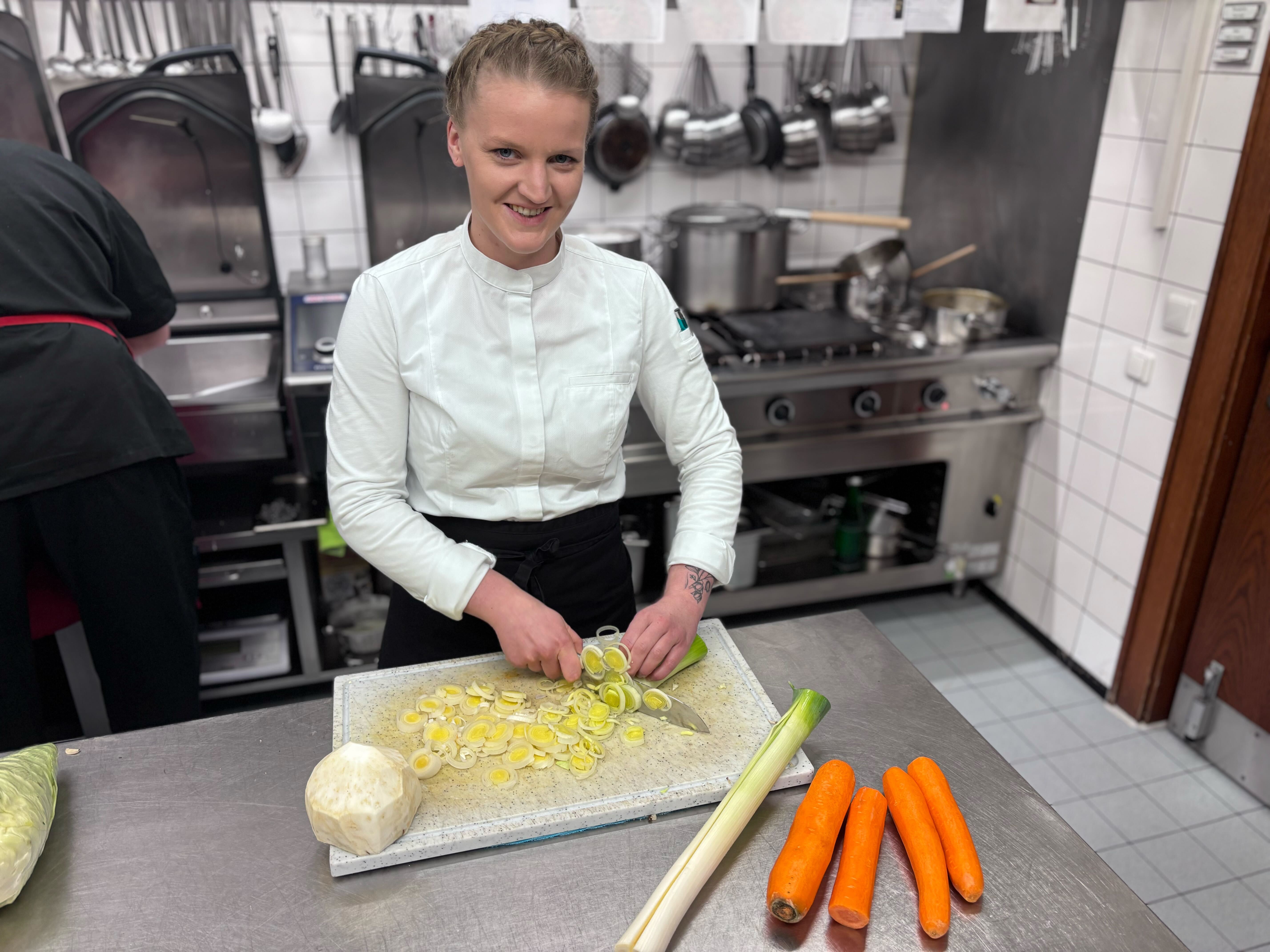 Bild: Gemüse schneiden und Anrichten gehören zu den täglichen Aufgaben von Merle Prick.