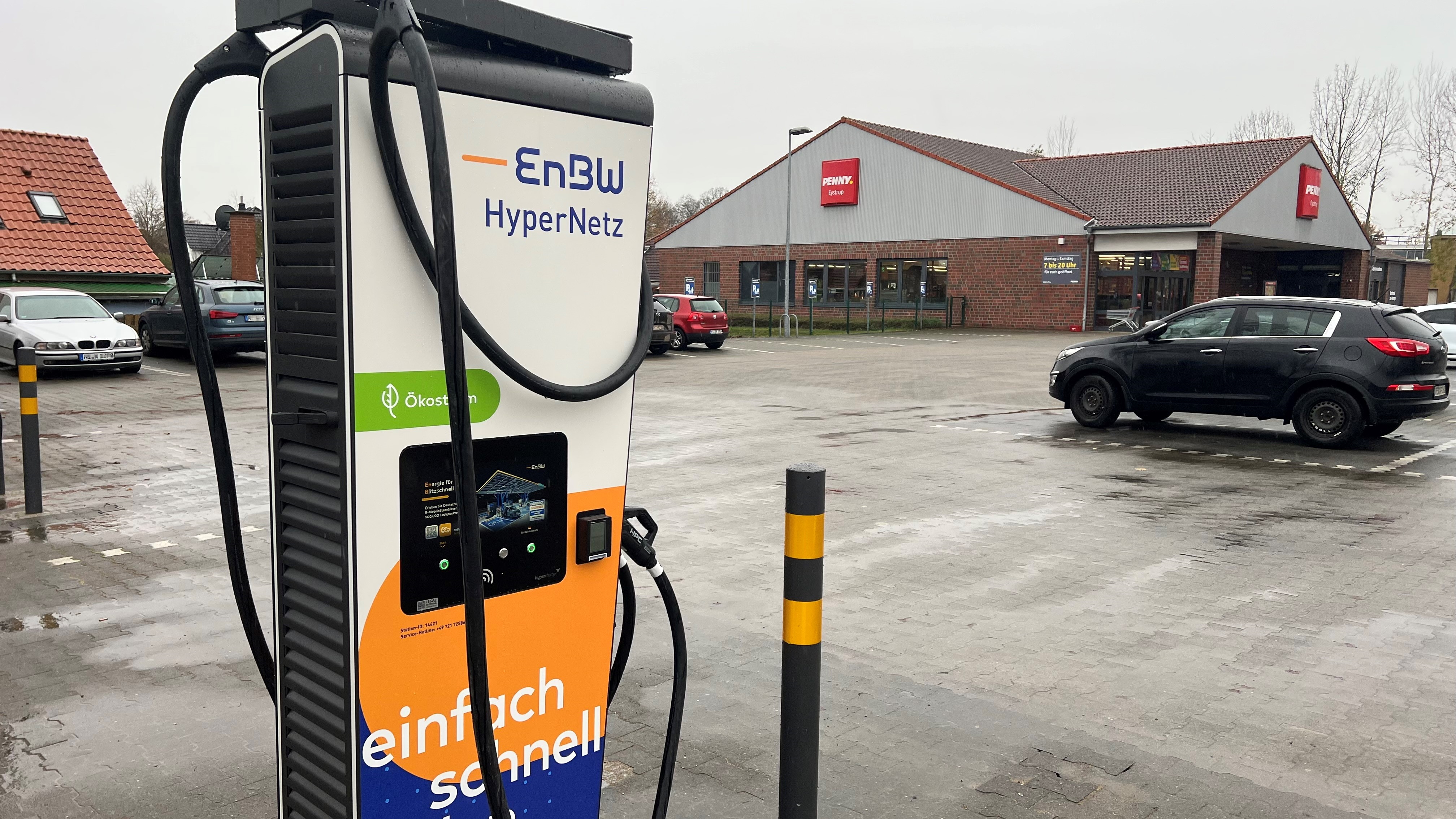 Bild: Am Penny-Markt an der Eystruper Bahnhofstraße gibt es vier neue Schnellladepunkte für Elektrofahrzeuge.