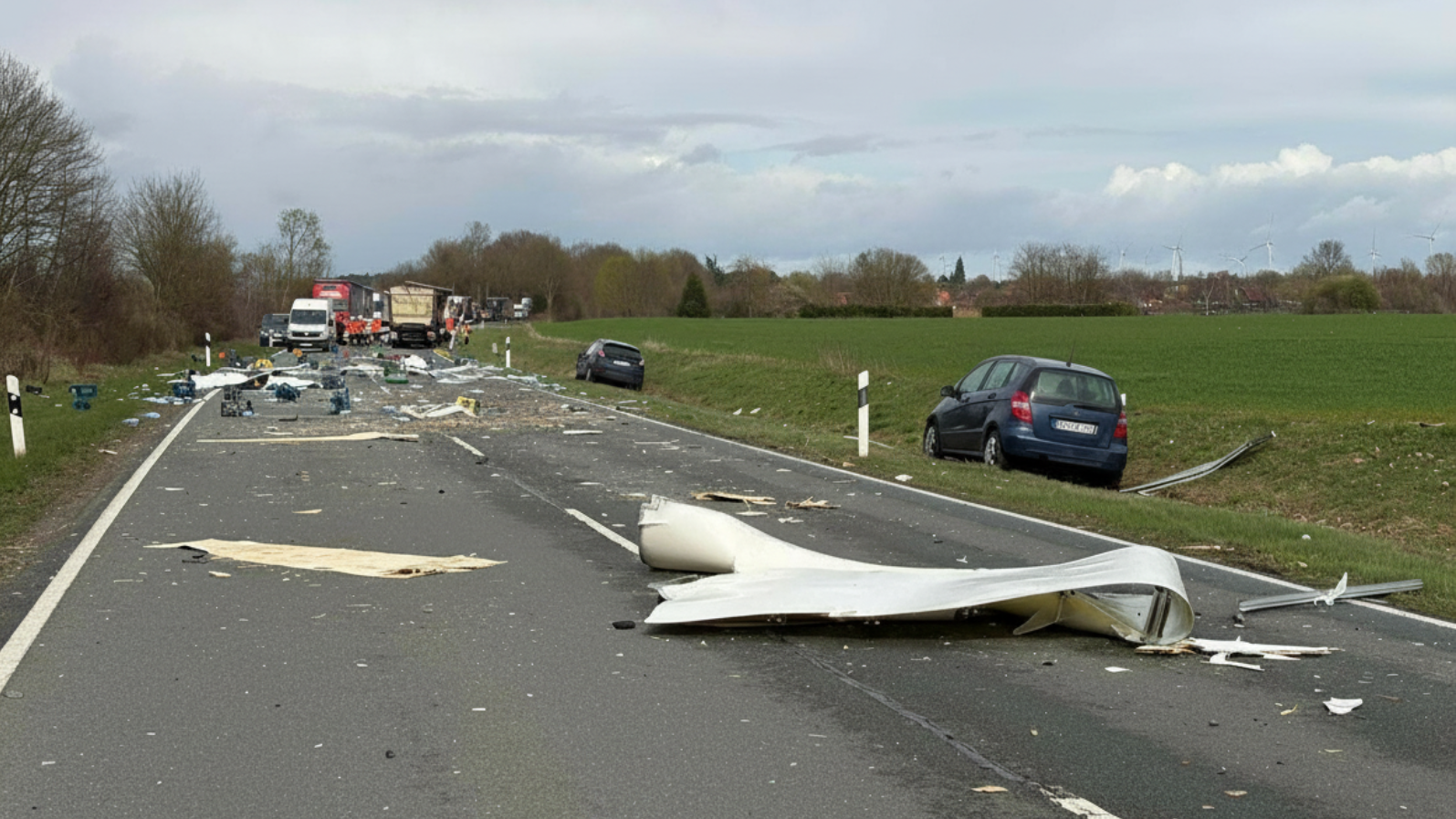 Vollsperrung nach Unfall mit Lkw auf B61 bei Uchte: Getränke auf der Fahrbahn verteilt