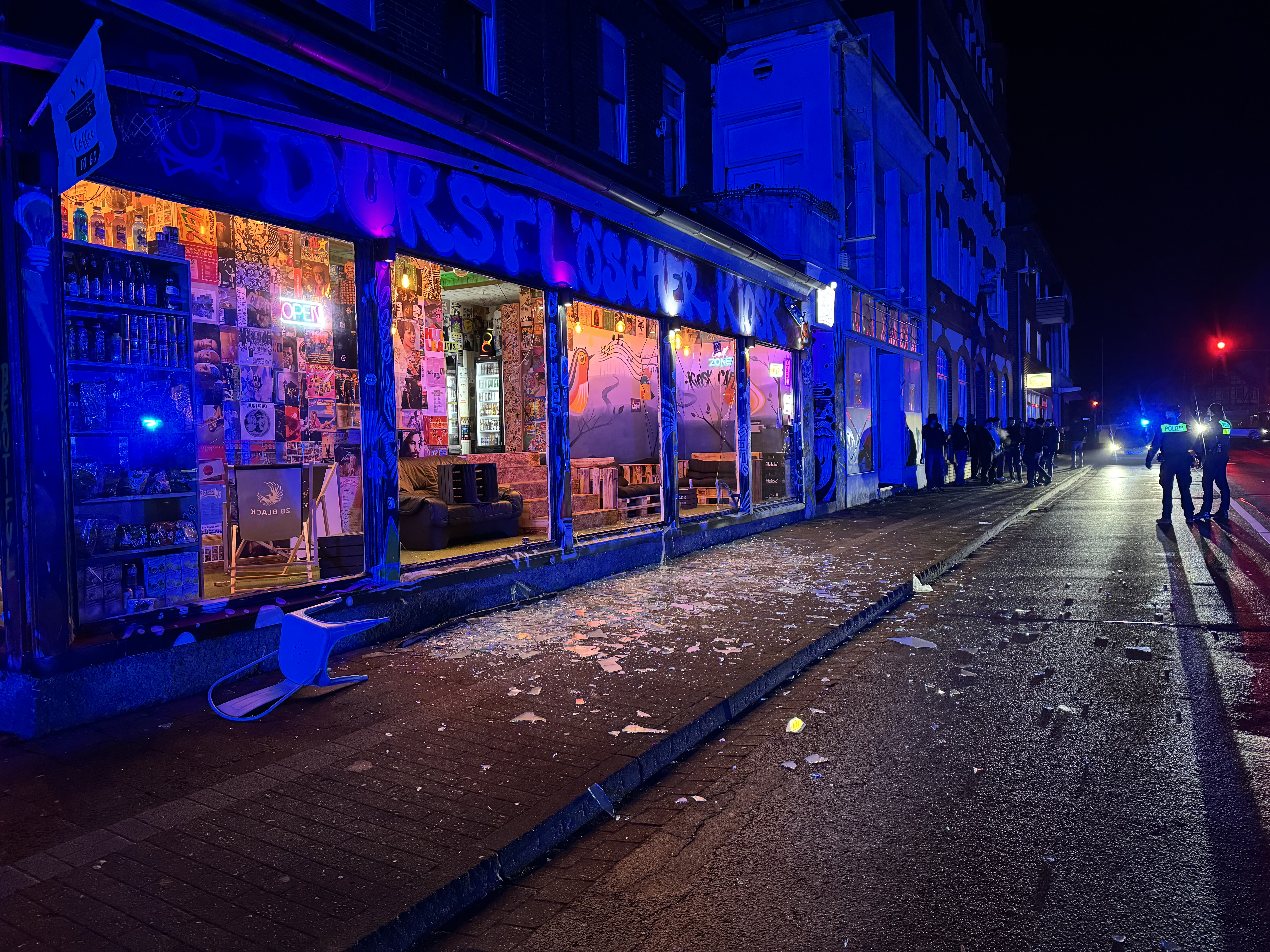 Nienburg – Erst 30, dann bis zu 70 Beteiligte: Nahe der „Filmeck-Kreuzung“ in Nienburg erlebt die Polizei eine aufgeladene Stimmung, hat Mühe, die Lager zu trennen. Eine Kiosk-Scheibe geht zu Bruch.