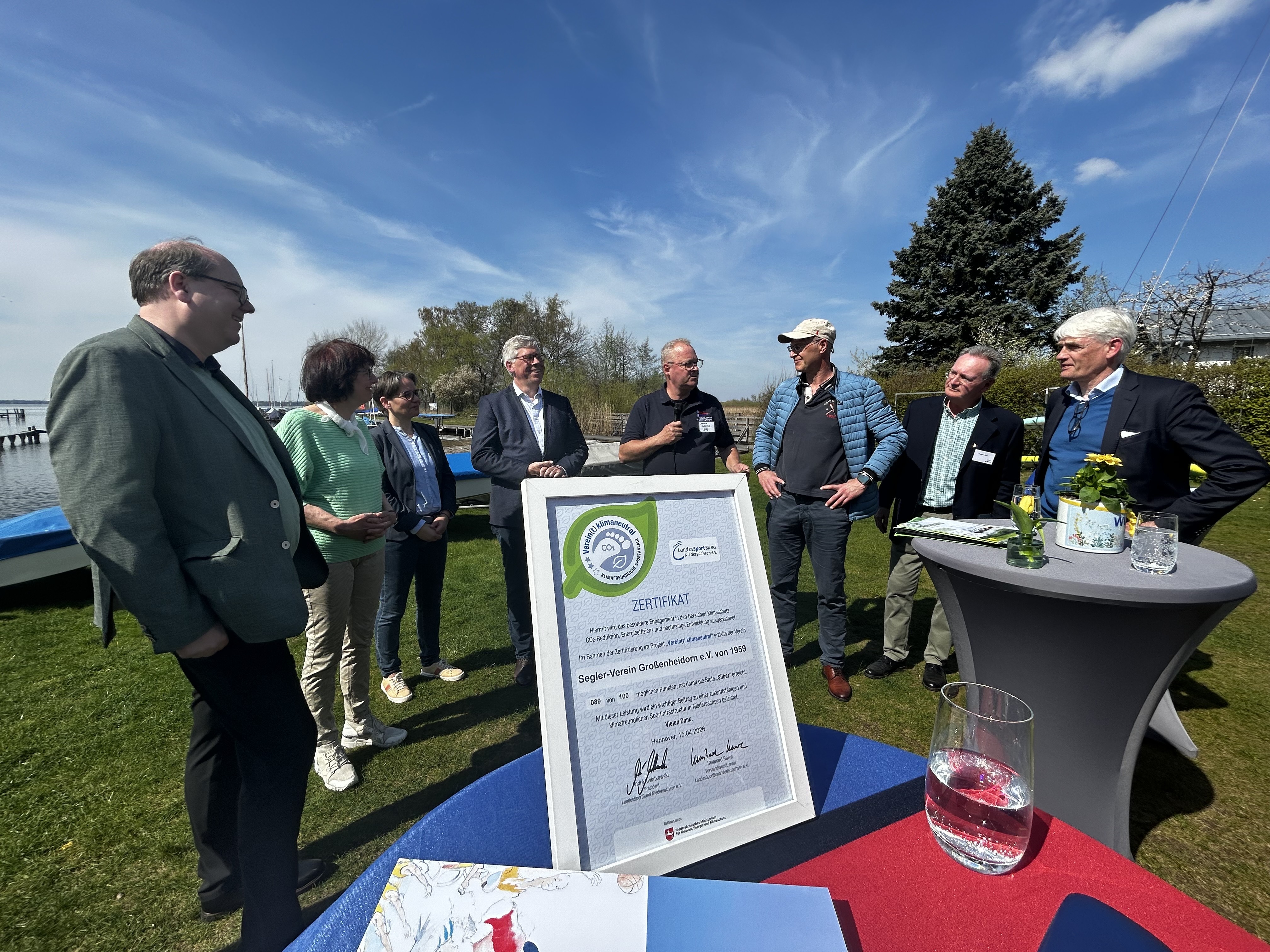 Bild: Zertifikatsübergabe in Großenheidorn: SVG ist „verein(t) klimaneutral“, mit Besuch von Umweltminister Christian Meyer.