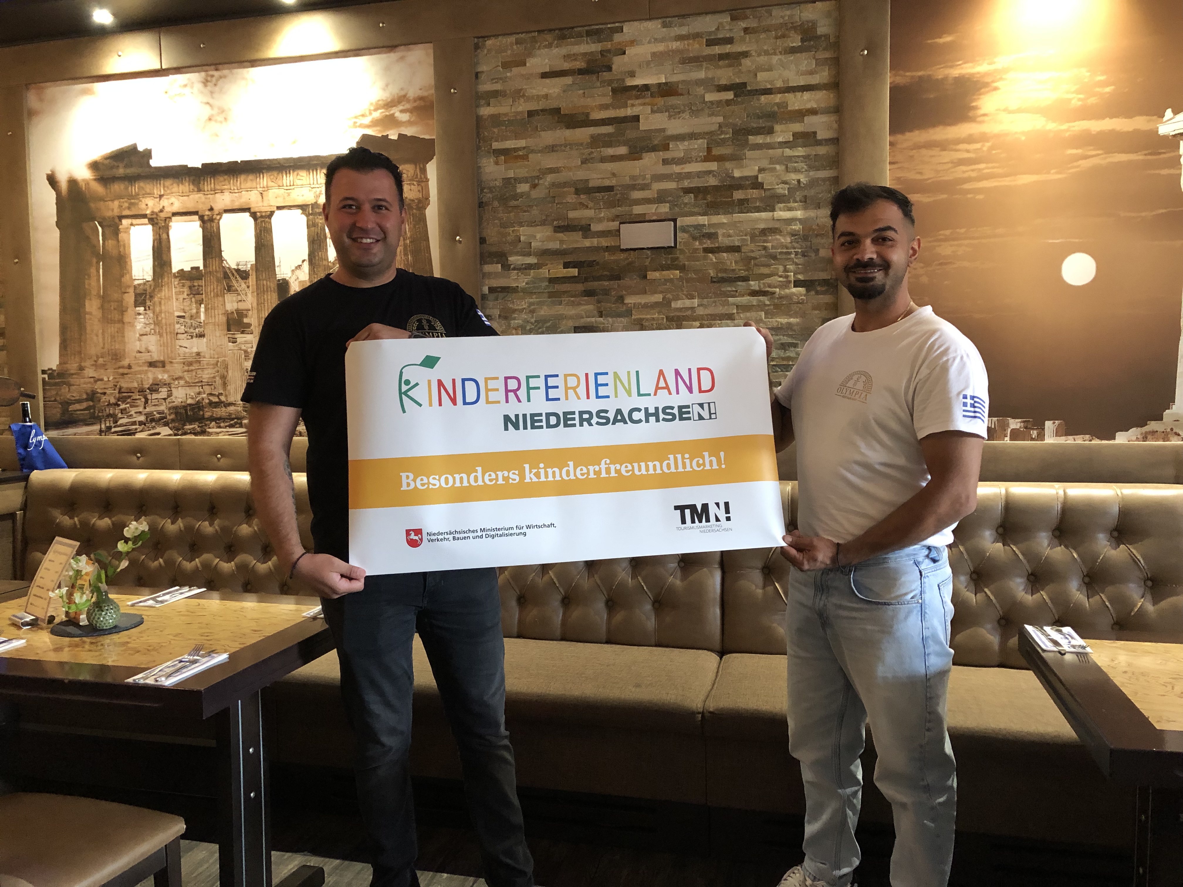 Bild: Die „Olympia“-Geschäftsführer Vassili Kontos (links) und Theocharis Panagiotidis freuen sich über die Kinderferienland-Auszeichnung.
