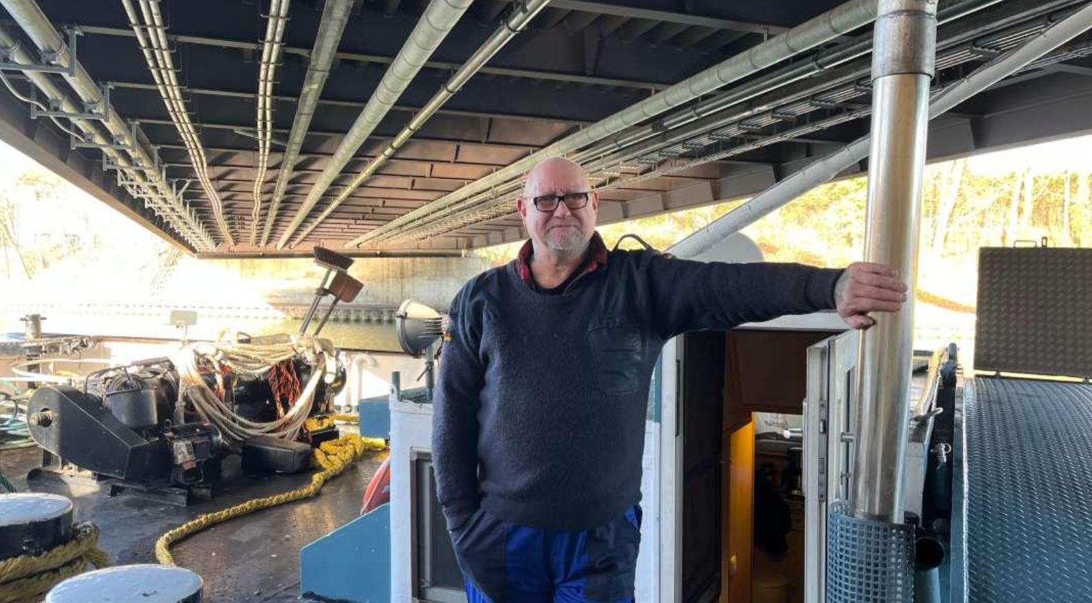 Bild: Der Nienburger Binnenschiffer Sascha Boltt sitzt seit Ende Dezember auf dem Mittellandkanal fest.