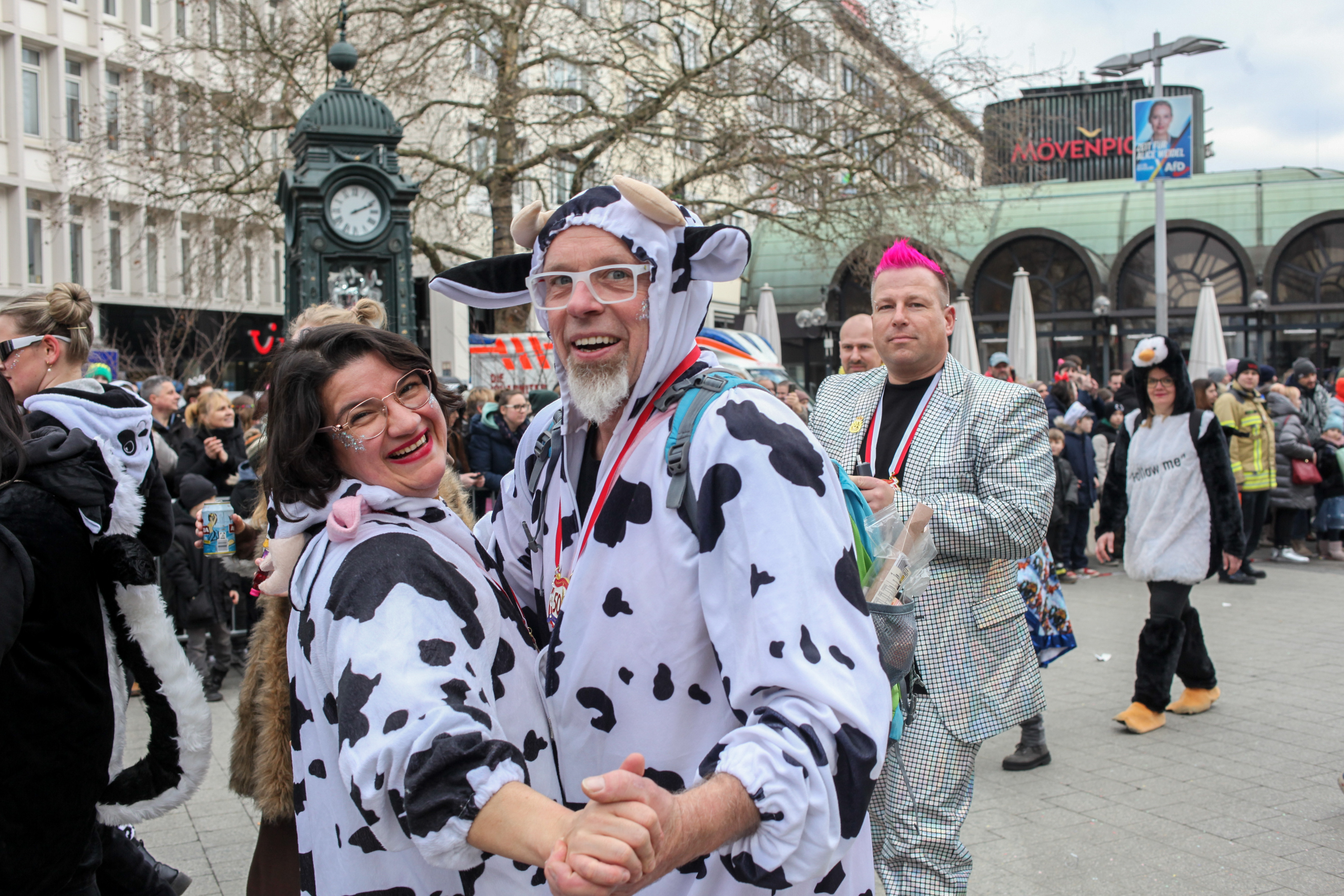 Auch bei Regen und Schnee beim Umzug dabei: Tanzmäuse machen Stimmung zu Hits von ABBA (💶)