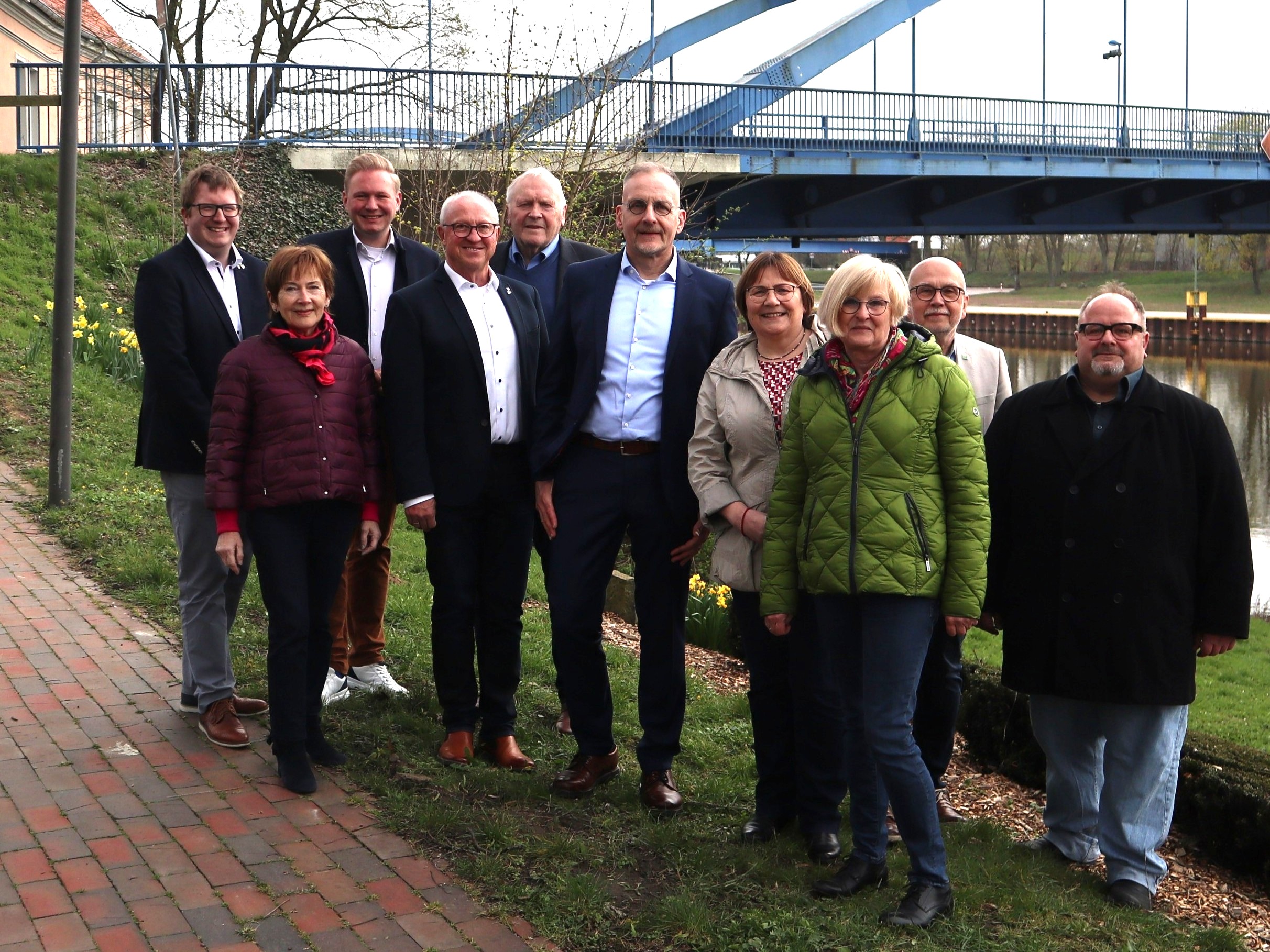 Bild: Gemeinsam für Marcus Jansen (von links): Steffen Lühring (SPD), Anne Wasner (SPD), Marten Stühring (CDU, Wilhelm Schröder (CDU), Wilhelm Bergmann-Kramer (CDU), Marcus Jansen, Heide Wirtz-Naujocks (SPD), Gerhild Köhr (Bündnis 90/Die Grünen), Heiko Lange (UWGSH) und Lars Grotheer (SPD).