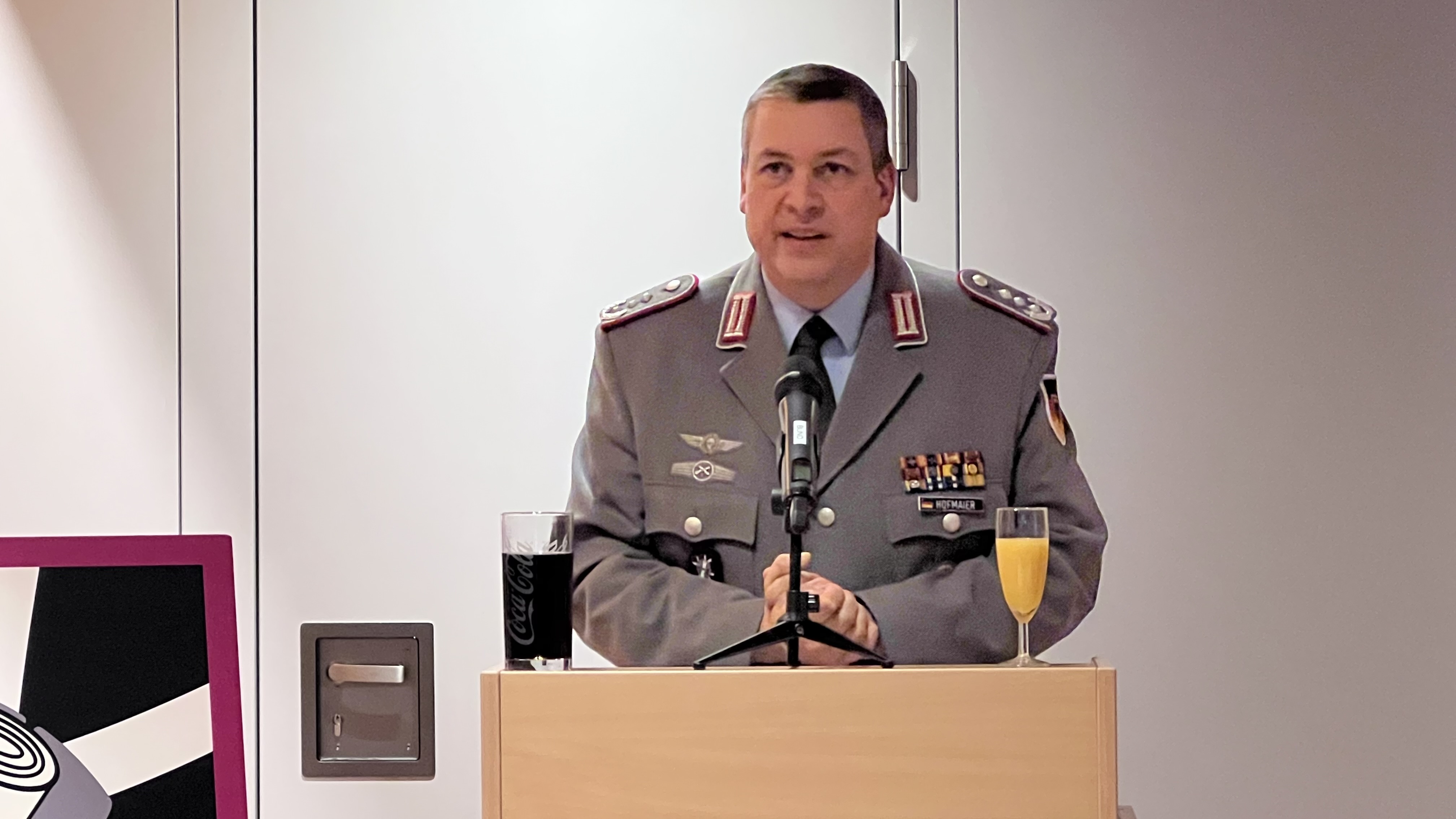 Bild: Oberst Stefan Hofmaier spricht zur sicherheitspolitischen Lage.