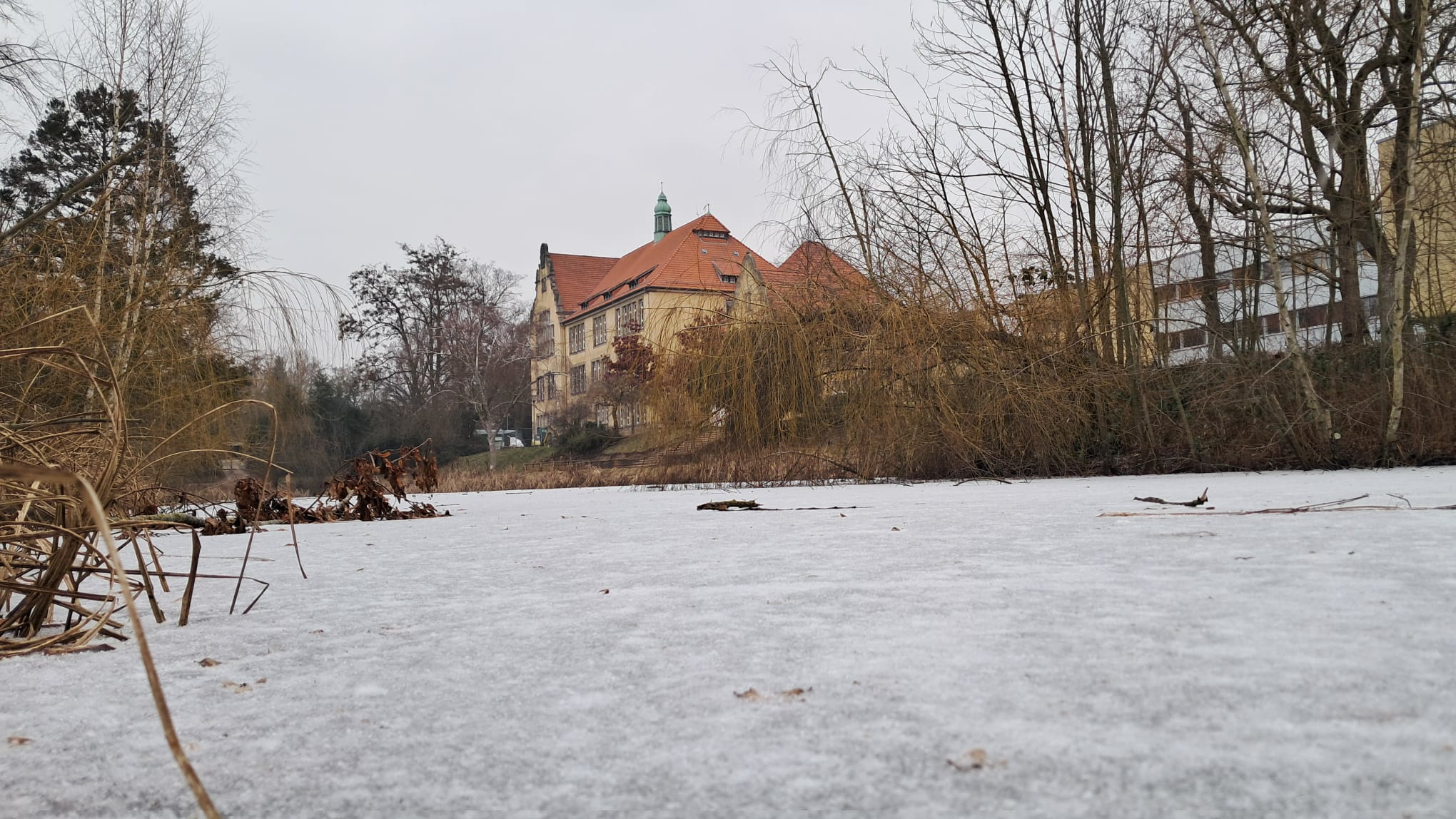 Bild: Der Nienburger Stadtgraben ist zugefroren.