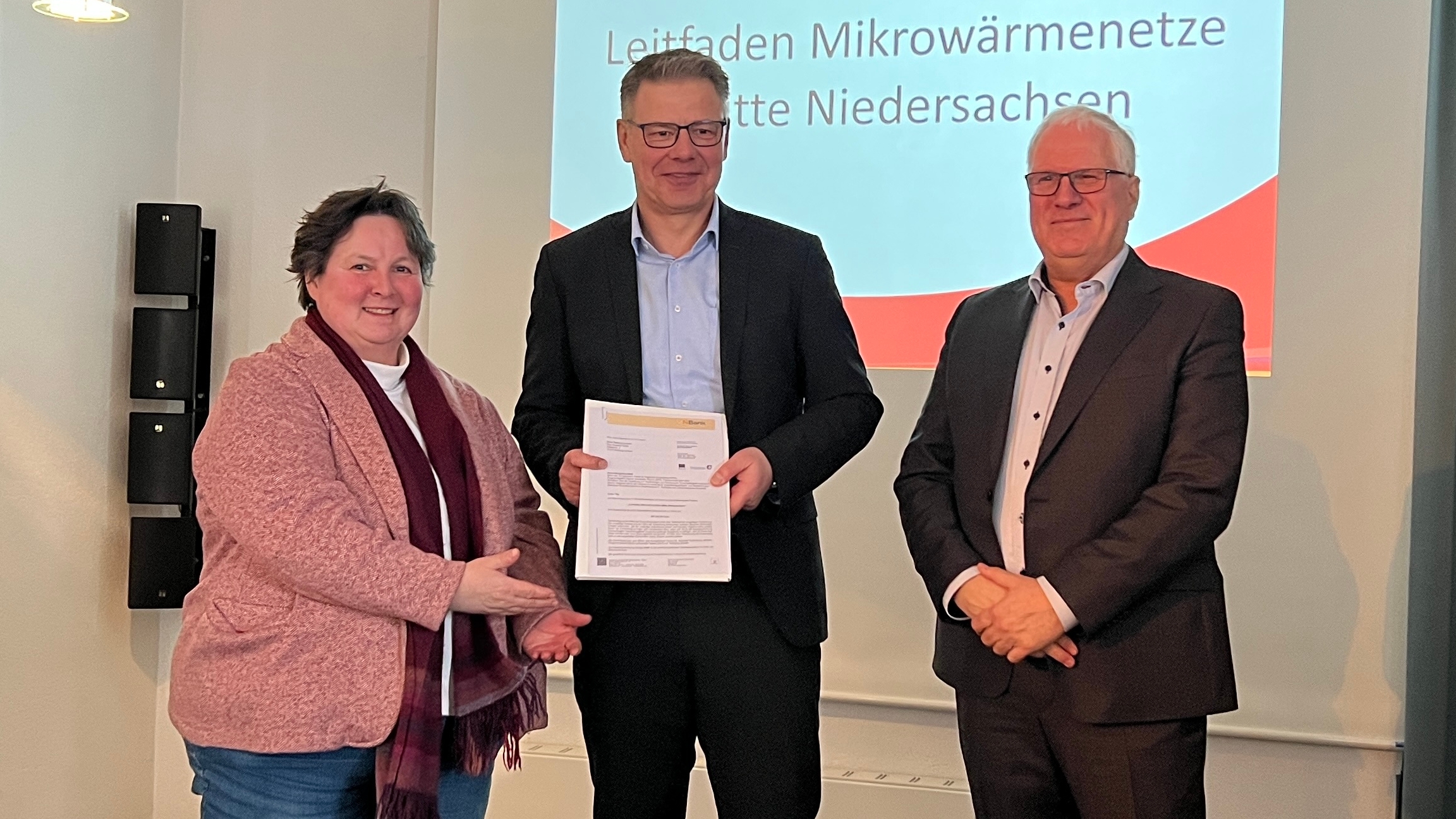 Bild: Susanne Grote und Martin Franke von der Stadt Rehburg-Loccum freuen sich über die Förderung, die Ottmar von Holtz als Landesbeauftragter für regionale Landesentwicklung Leine-Weser überreichte.