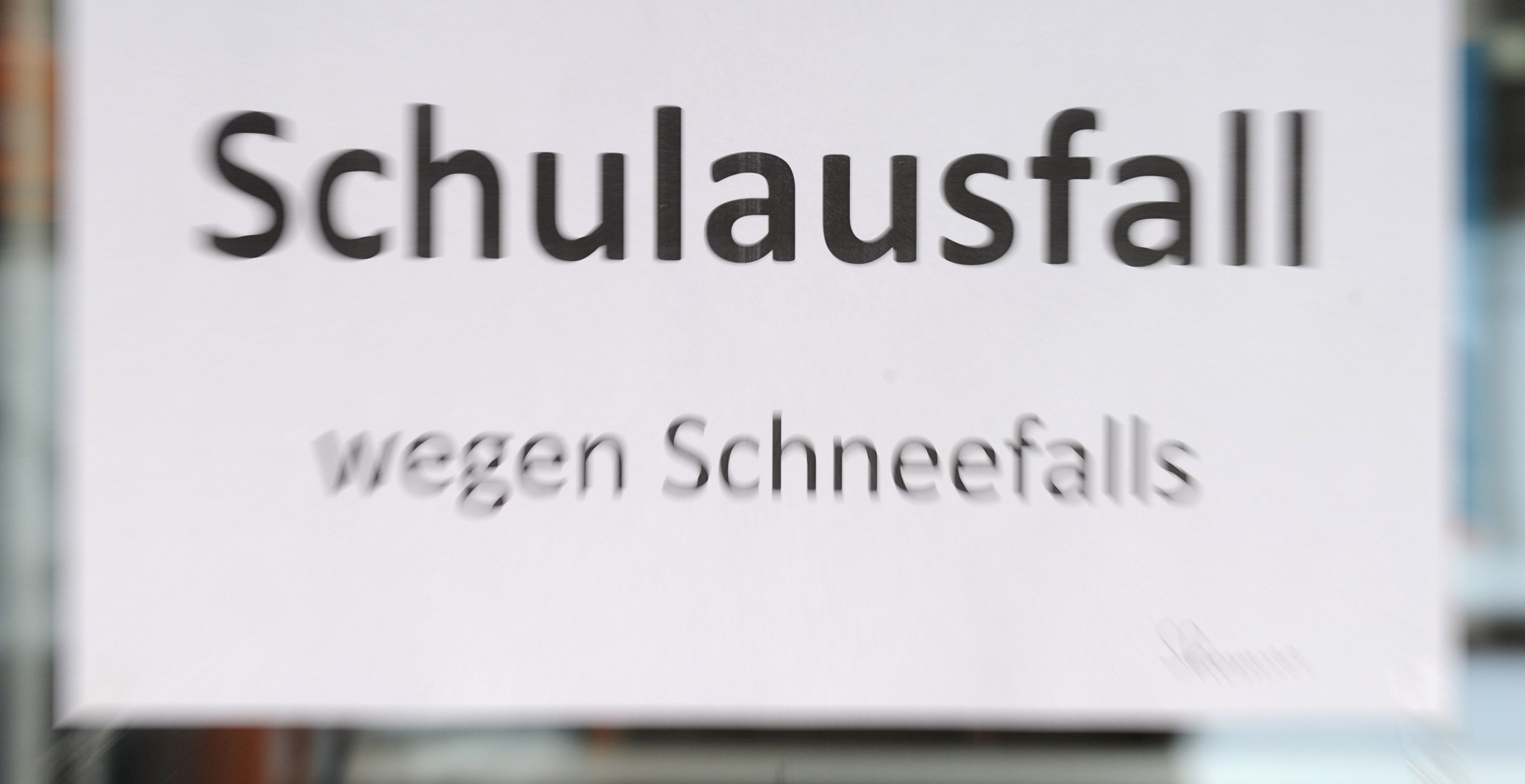 Bild: ILLUSTRATION - ARCHIV - Ein Schild an der Eingangstür informiert am 16.12.2010 an einer Schule in Niedersachsen über den Schulausfall wegen der winterlichen Witterungsbedingungen (Foto mit Zoomeffekt). Foto\ Jochen Lübke/dpa (zu lni "Schulträger entscheiden über Schulausfall im Winter" vom 07.01.2016) +++(c) dpa - Bildfunk+++ (zu dpa: «Schnee lähmt Fulda – Schulen, Müllabfuhr und Busse betroffen»)