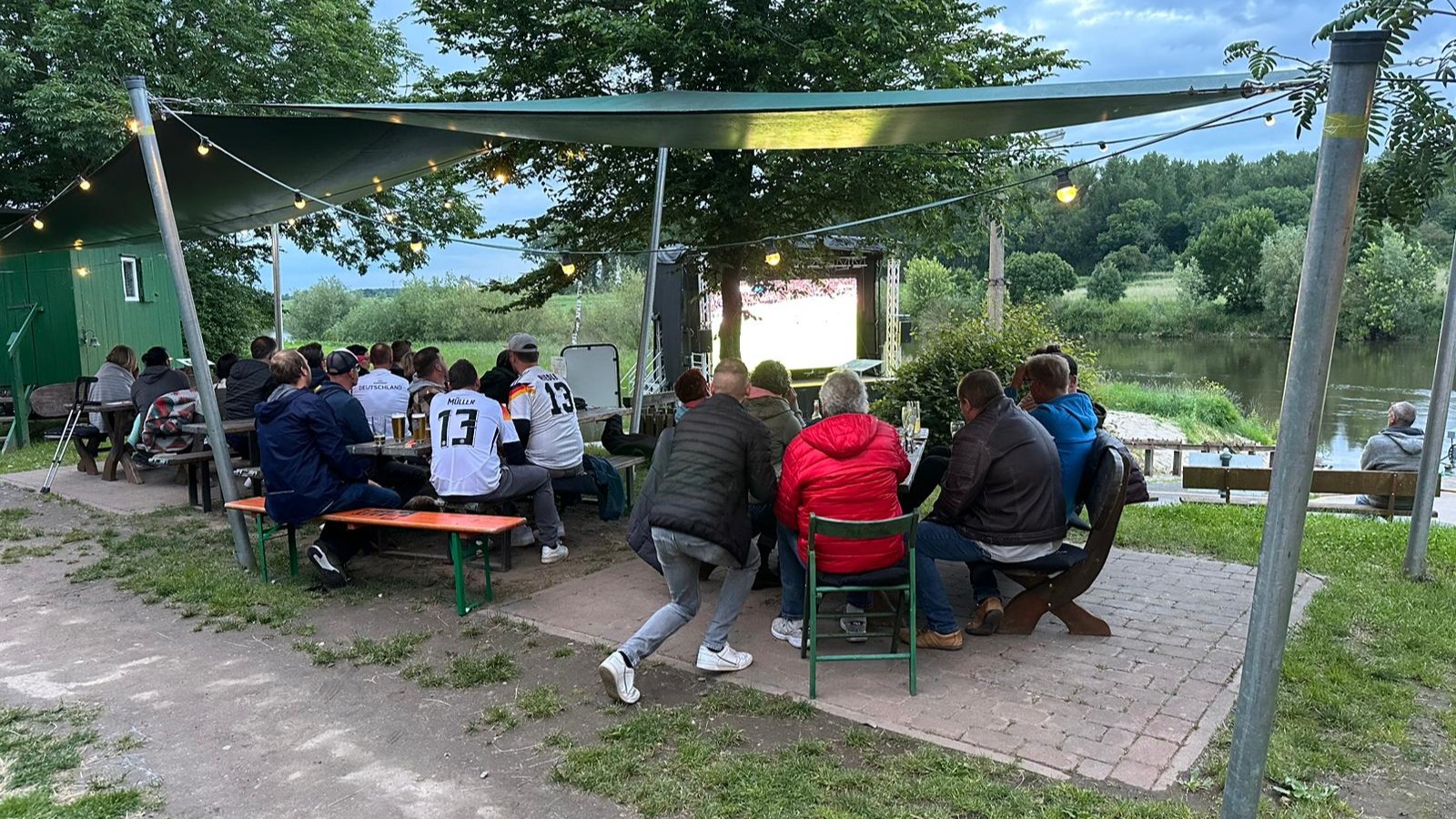 Bild: An der "Hol-ü-Bar" an der Weserfähre in Schweringen haben Fußballfans sich zu Public-Viewing-Veranstaltungen getroffen.