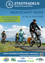 STADTRADELN ist mehr als ein Wettbewerb. Es ist ein Gemeinschaftsprojekt für Klimaschutz, gesunde Bewegung und lebenswerte Städte und Gemeinden. Zum fünften Mal beteiligt sich die Samtgemeinde Grafschaft Hoya an der Klima-Bündnis-Kampagne und ruft dazu auf, vom 11. bis zum 31. Mai möglichst viele Kilometer mit dem Fahrrad zurückzulegen. Teilnehmen können alle, die in der Samtgemeinde wohnen, dorthin für den Job pendeln, einem hiesigen Verein angehören oder eine der Schulen besuchen.