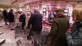 Über die Feiertage wird reichlich gegessen und getrunken. Vorher werden die Einkaufswagen gut gefüllt, Rafael Hein berichtet.