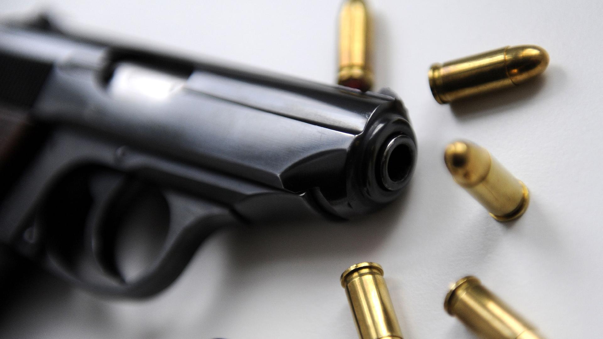Bild: Eine Pistole mit Patronen (Themenbild zu "Waffen" / "Munition").