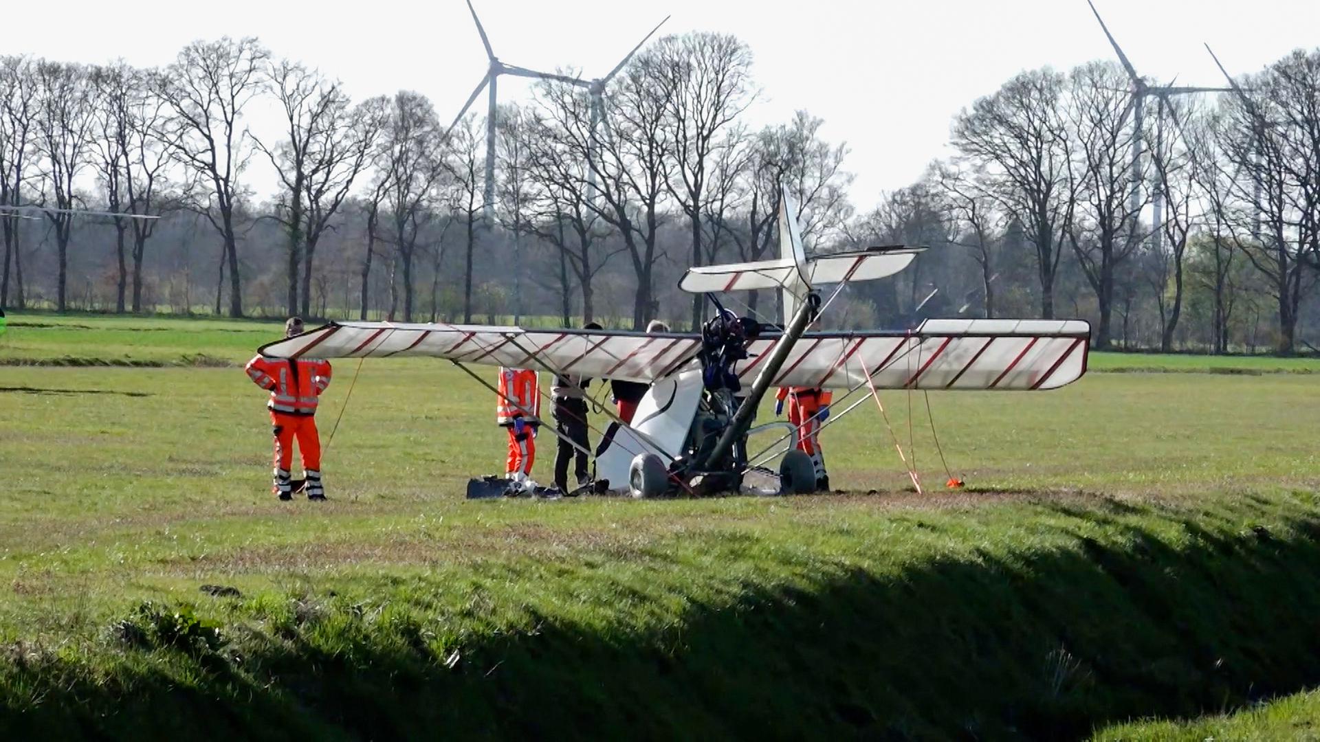 Bild: Rettungskräfte an einem abgestürzten Ultraleichtflugzeug in Barßel