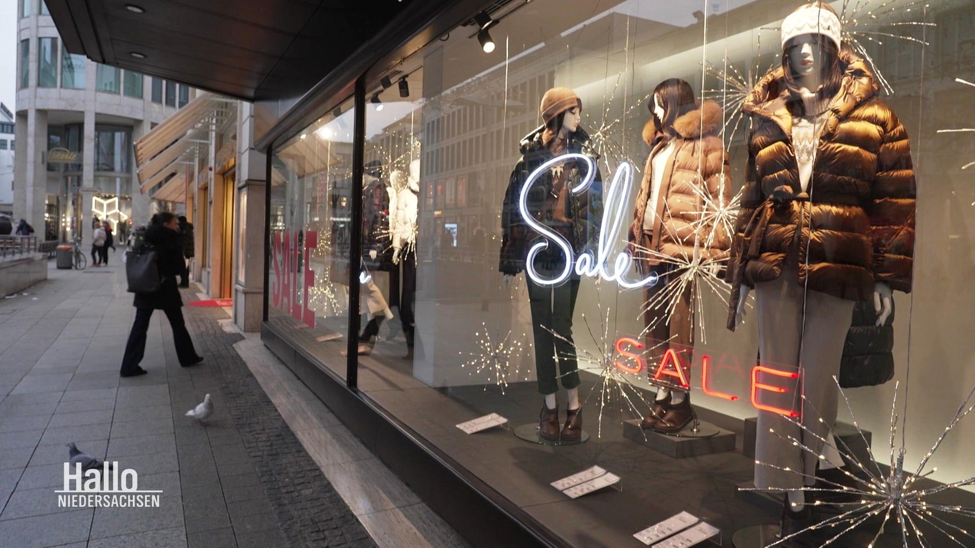Bild: Eine Schaufensterfront eines Klamottengeschäfts mit "Sale"-Schildern.