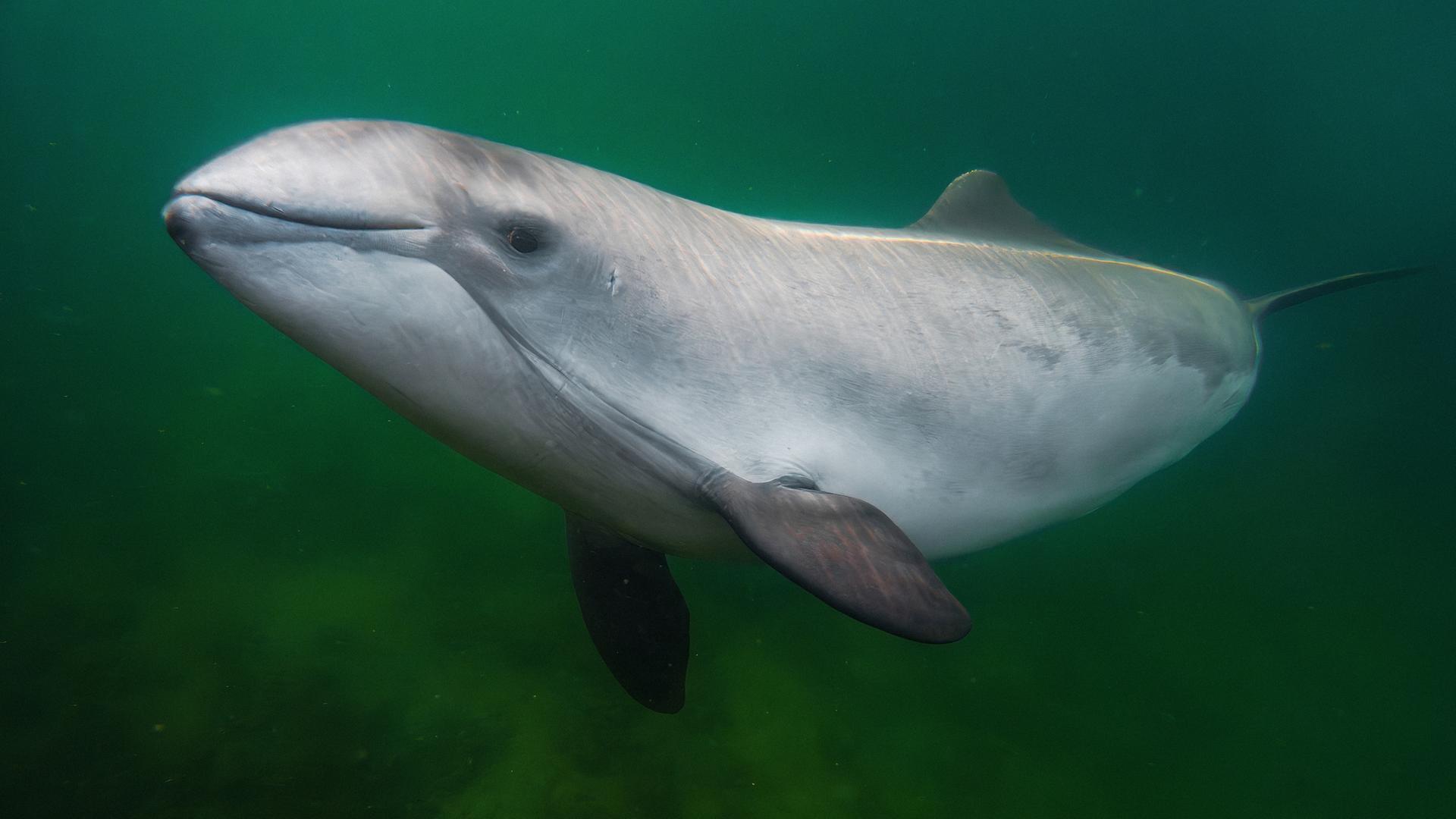 Bild: Ein Schweinswal im Wasser.