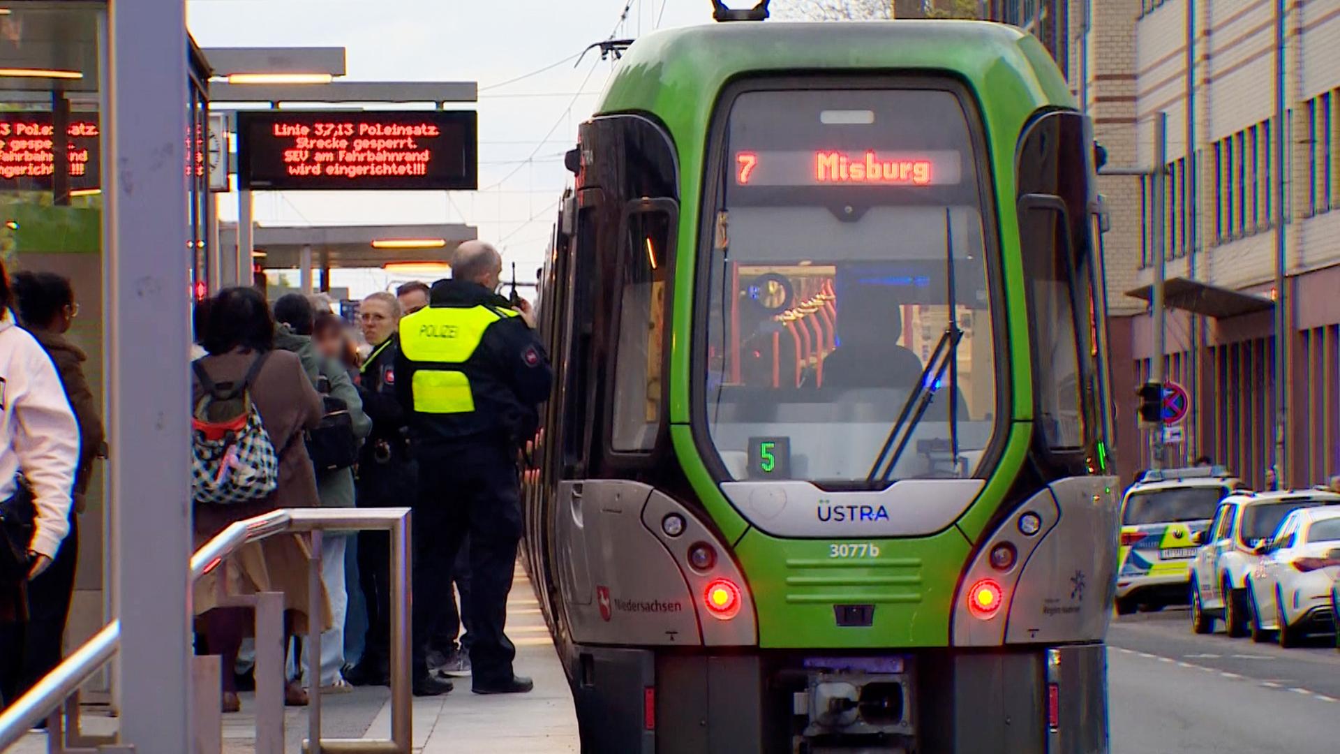 Bild: Polizisten und Fahrgäste nach einer Reizgasattacke in einer Stadtbahn in Hannover