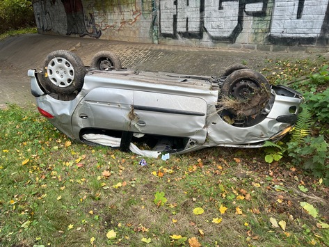 Pkw bleibt nach Verkehrsunfall auf dem Dach liegen