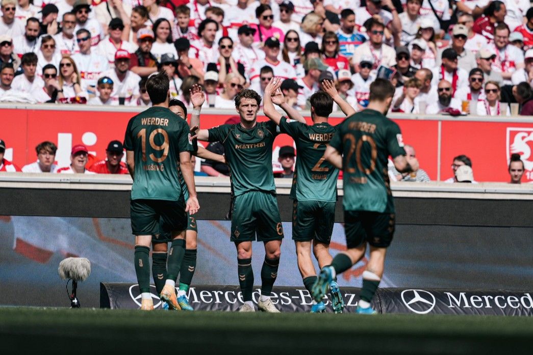 Ein wichtiger Punkt im Kampf um den Ligaverbleib! Der SV Werder hat sich vor 60.000 Zuschauer*innen in der ausverkauften MHP-Arena mit 1:1-Unentschieden vom VfB Stuttgart getrennt. Der SVW lag durch Jens Stage sogar lange in Führung. Der Spielbericht.