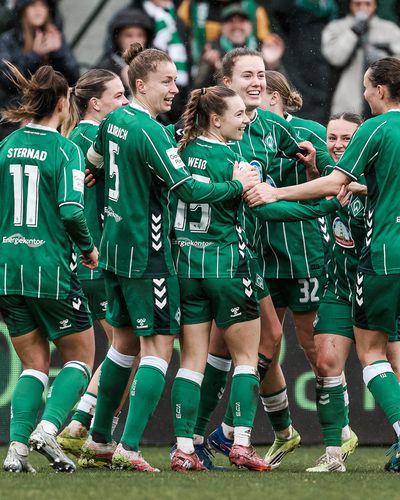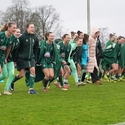 Bild: Die Werder-Frauen bejubeln den Heimsieg.