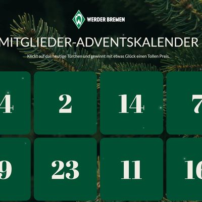 Für alle Vereinsmitglieder des SV Werder Bremen gibt es einen exklusiven Online-Adventskalender mit attraktiven Preisen.
