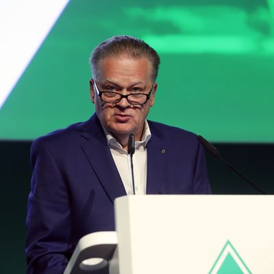Bild: Steffen auf dem Podium bei der Pressekonferenz