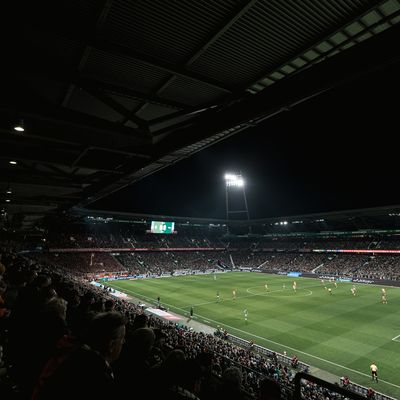 Bild: Das vollbesetzte Weserstadion während eines Flutlichtspiels.