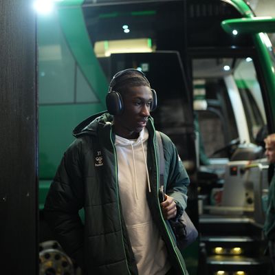 Bild: Karim Coulibaly nach der Busankunft im Stadion.