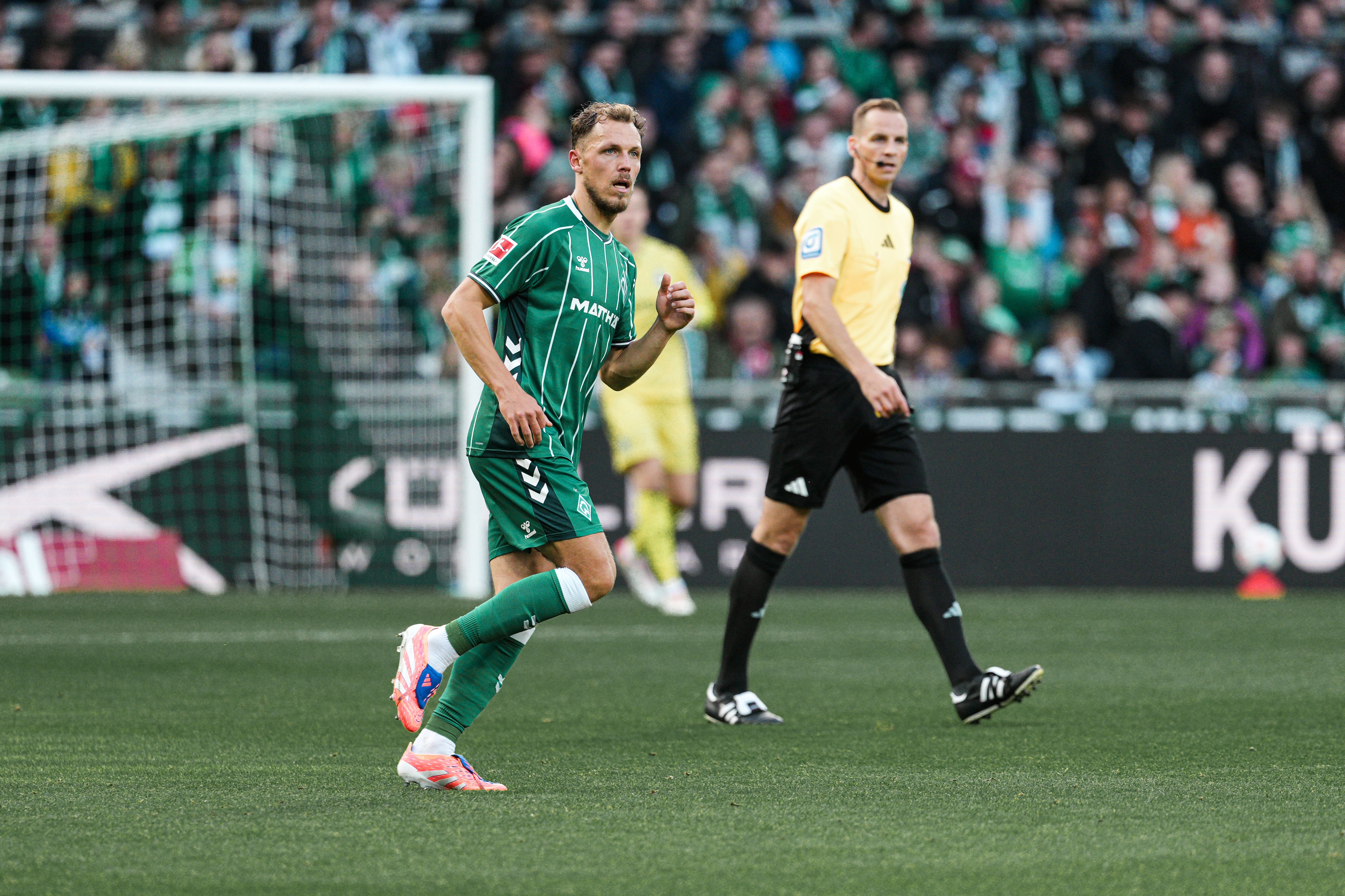 Bild: Lynen läuft im grünen Heimtrikot im Weserstadion