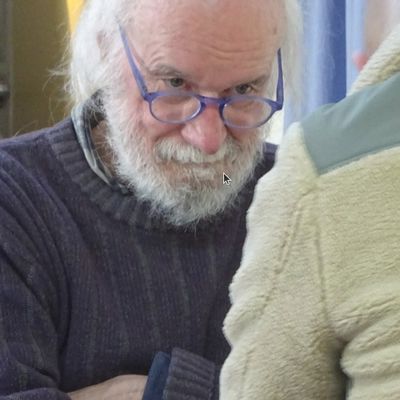 Bild: Horst Steffen sitzt auf der Bühne des PK-Raums und spricht ins Mikro