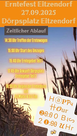 Erntefest in Eitzendorf am Samstag, den 27.09.2025 auf dem Dörpsplatz Eitzendorf